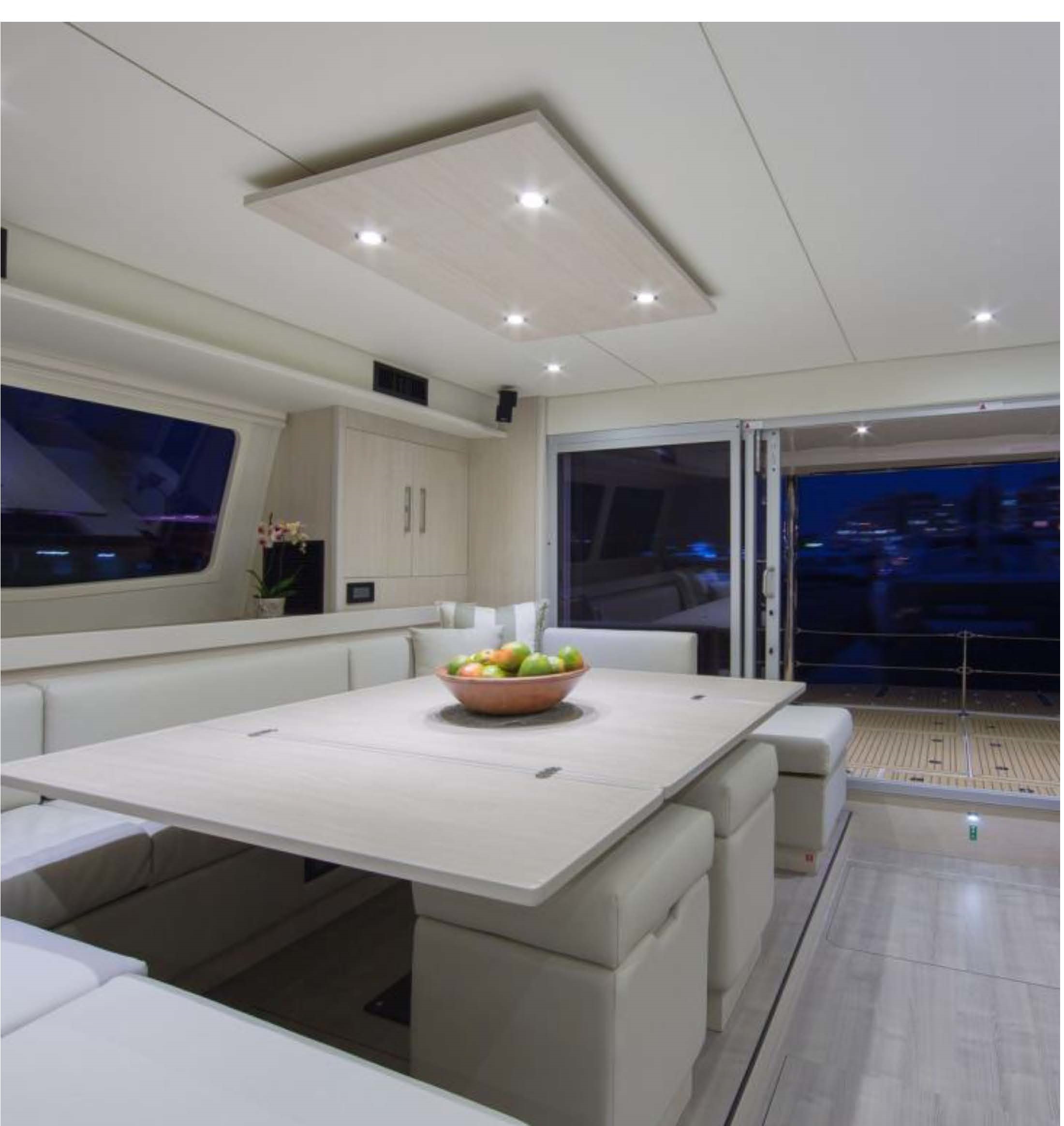 The large open aft cockpit and forward deck provide ample space for al fresco dining and lounging. A hydraulic swim platform at the stern gives additional space for enjoying the water toys or jumping into the water. The whole deck is covered with Flexiteak deck, a lightweight, high impact, simulated teak.