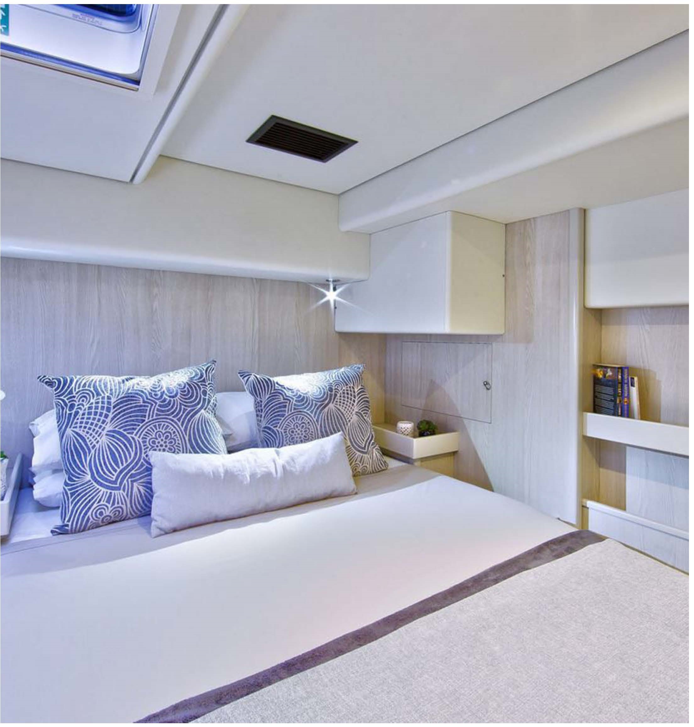 Up to ten guests can be accommodated in five suites and there are additional cabins for the three crew members.