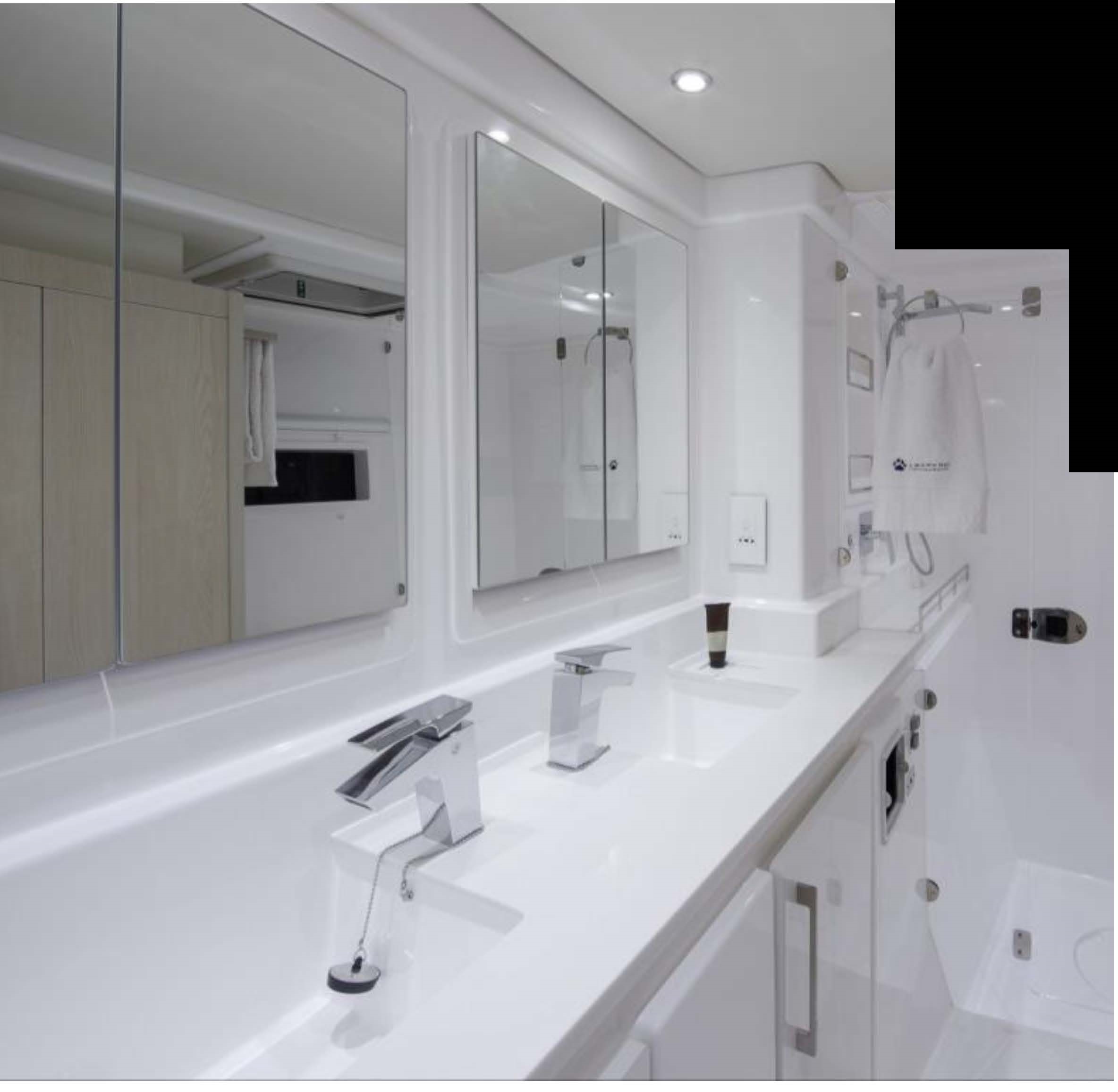 In the starboard hull there is a huge master suite with extremely generous ensuite and a forward double cabin. There is also another cabin in the port side hull, which like all the suites includes an ensuite bathroom facilities.