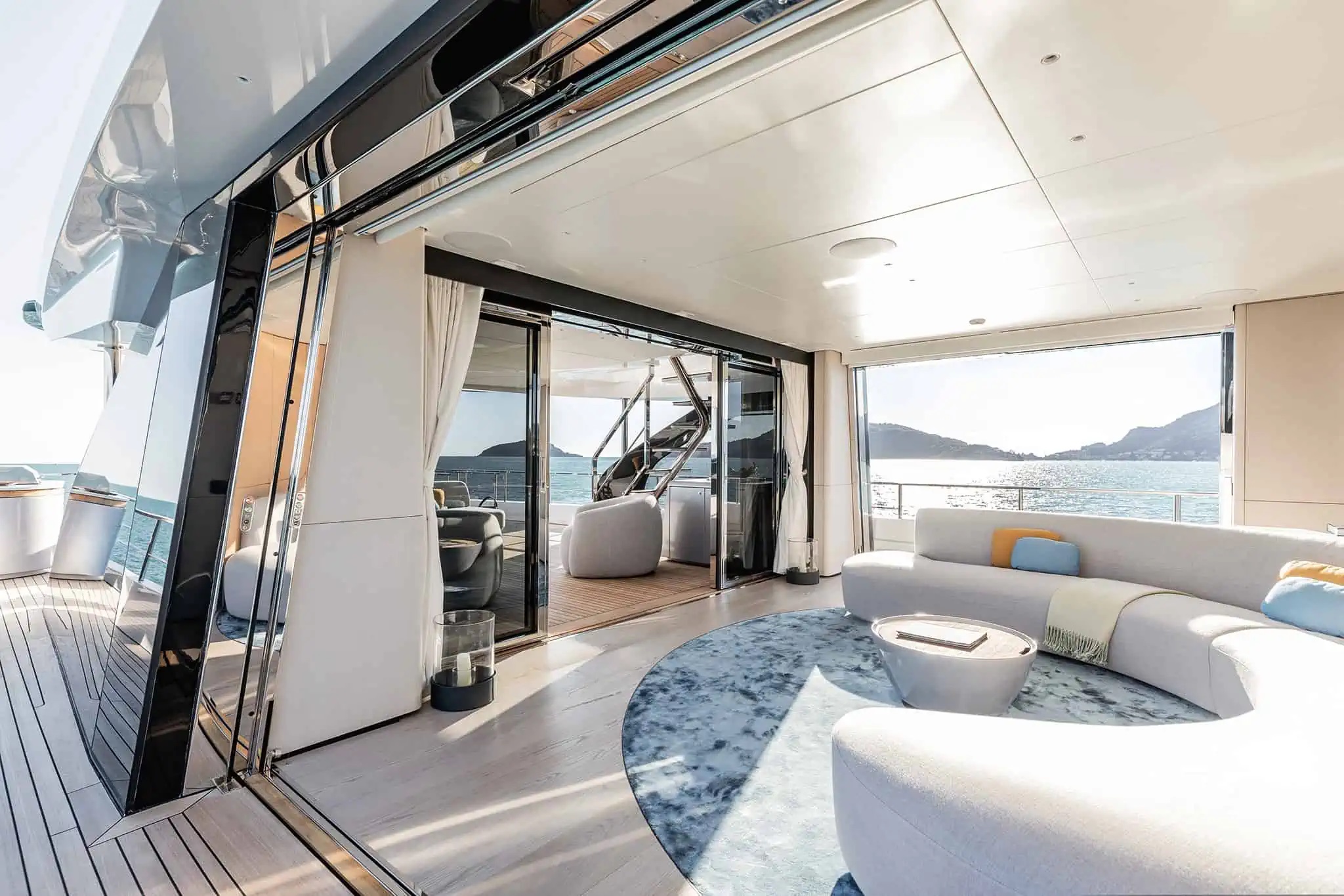 The sky lounge offers a similar hand made sofa and the space can be opened on three sides thanks to huge sliding doors.