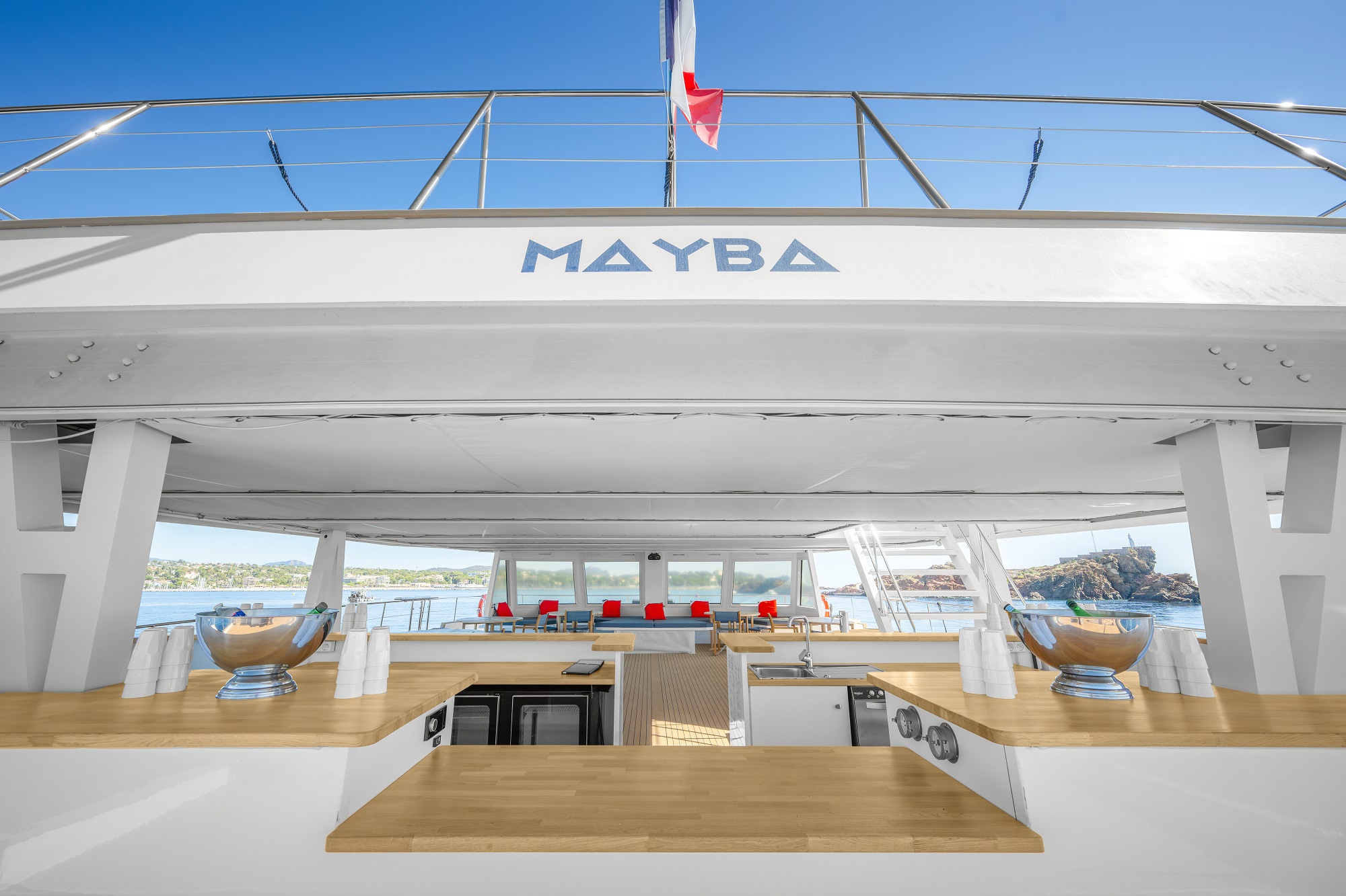 NOTABLE FEATURES OF MAYBA: ~Party catamaran ~Flexible deck furnishings ~Great views ~Paddle boards ~Sun pads ~Huge bar ~Air conditioning ~WiFi