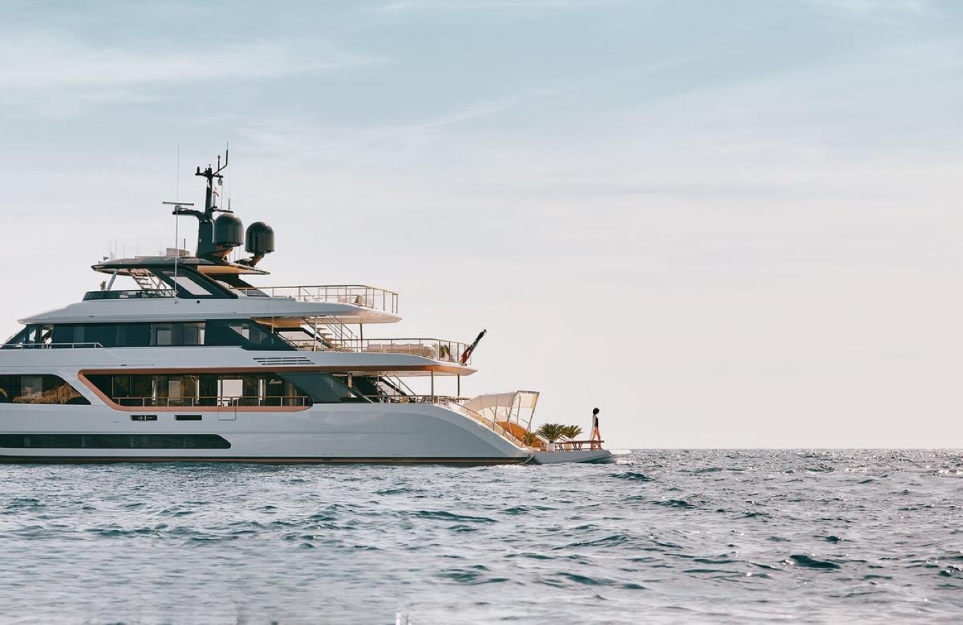 The upper deck aft is dedicated to dining and features a huge table and chairs plus the added bonus of a generous lounge space with opposing L-shaped sofas. Also on this level, the foredeck boasts a superb jacuzzi pool with a row of cushioned sun pads at one edge.