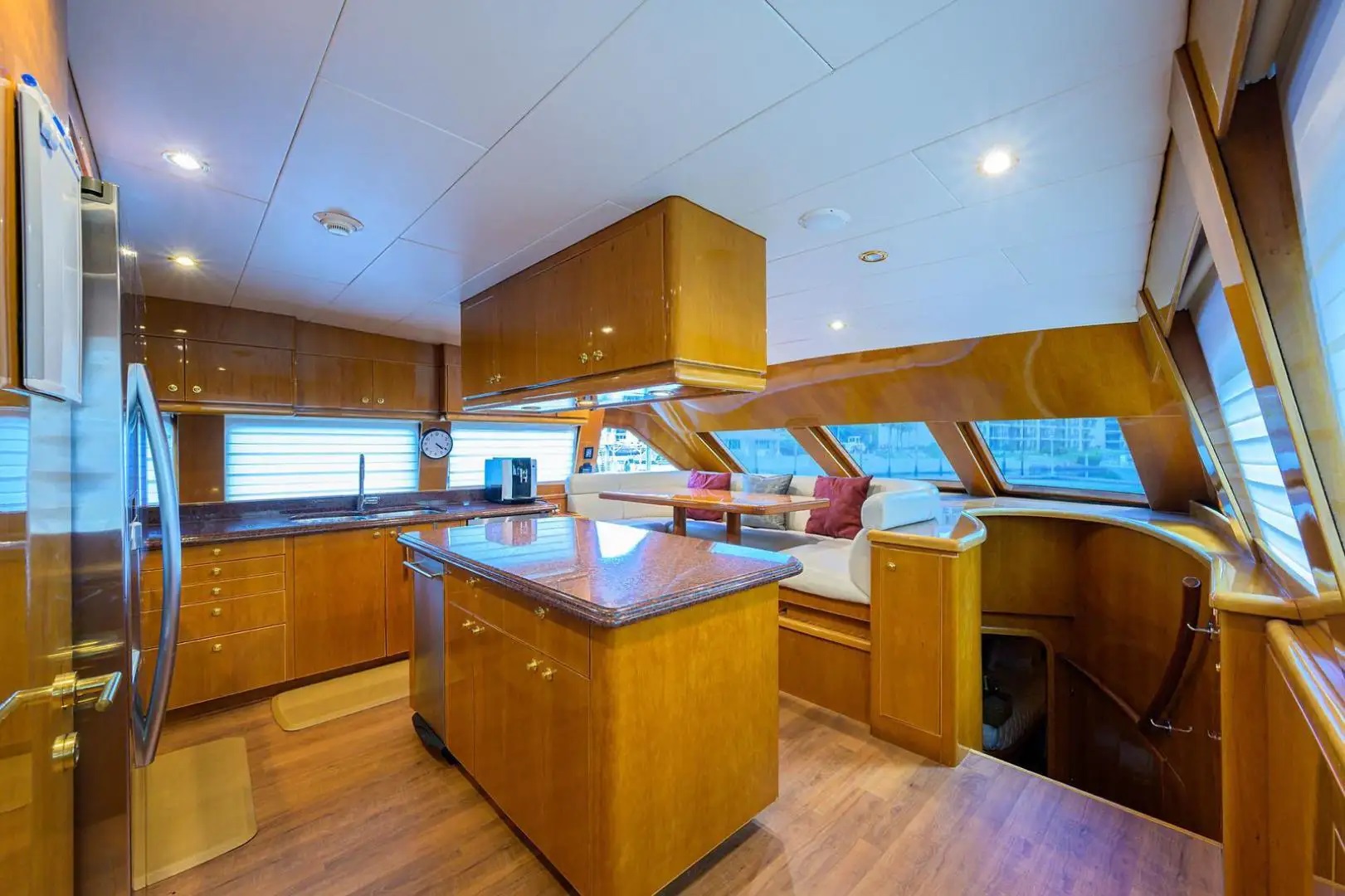 The guest suites are on the lower deck. The four lower deck suites can accommodate up to eight guests including a full beam master amidships, a forward VIP and two convertible cabins.
