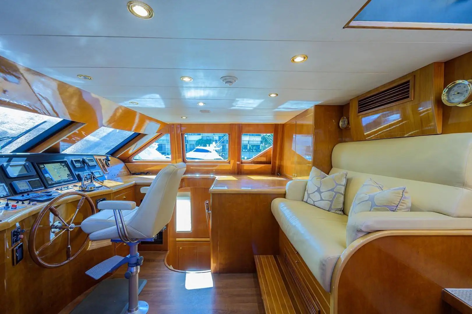 The flybridge offers a wonderful sun deck where guests can enjoy a sheltered dining and lounge area and sit up bar.