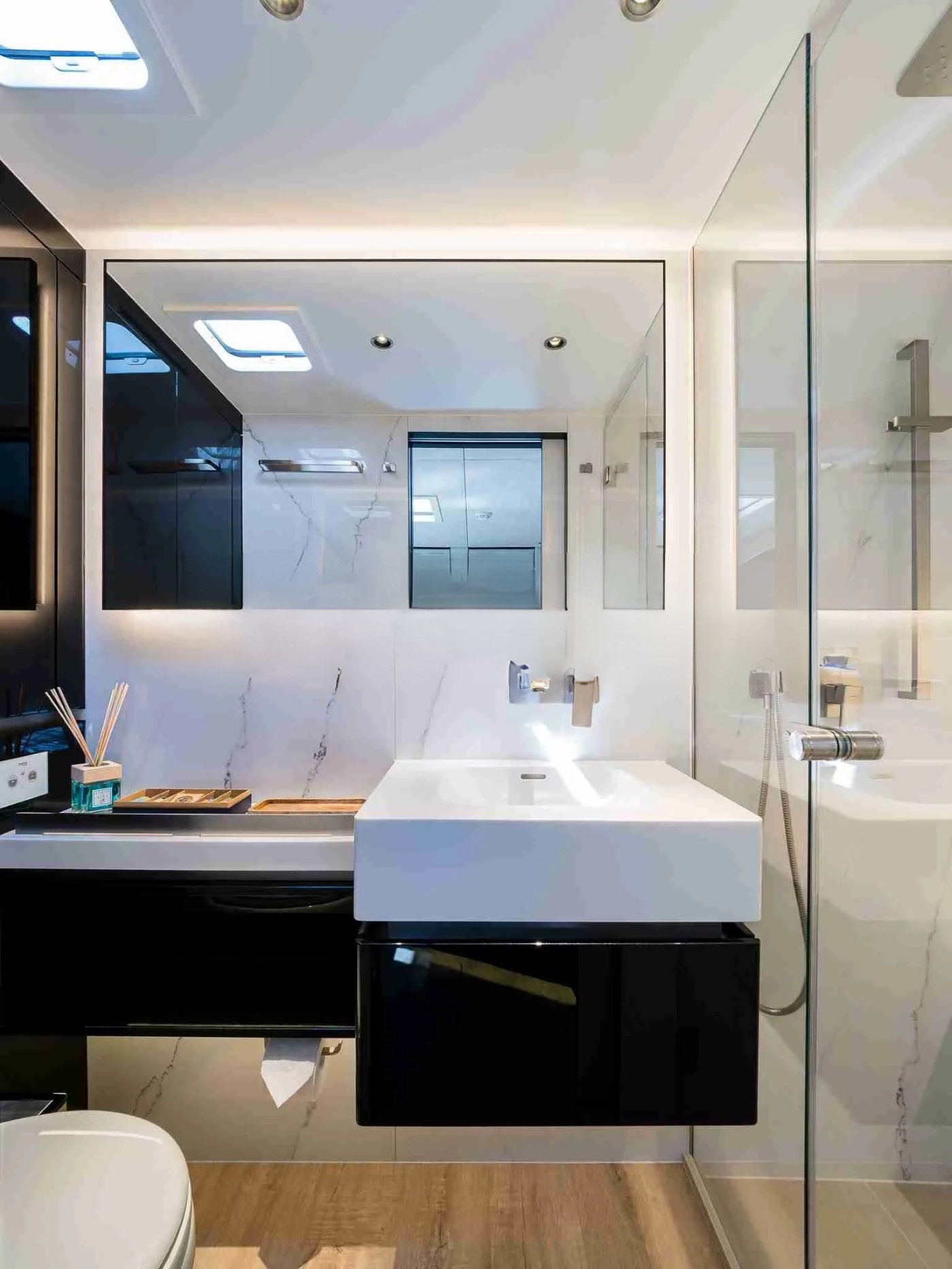 Sailing yacht N+1 is a 21.4m (70’2”) Sunreef 70 catamaran built in 2024 to comfortably accommodate eight guests in four elegant suites. Fabulous entertainment spaces across the yacht make her a perfect choice for families and friends looking for an elegant sailing experience for their next yacht charter vacation.