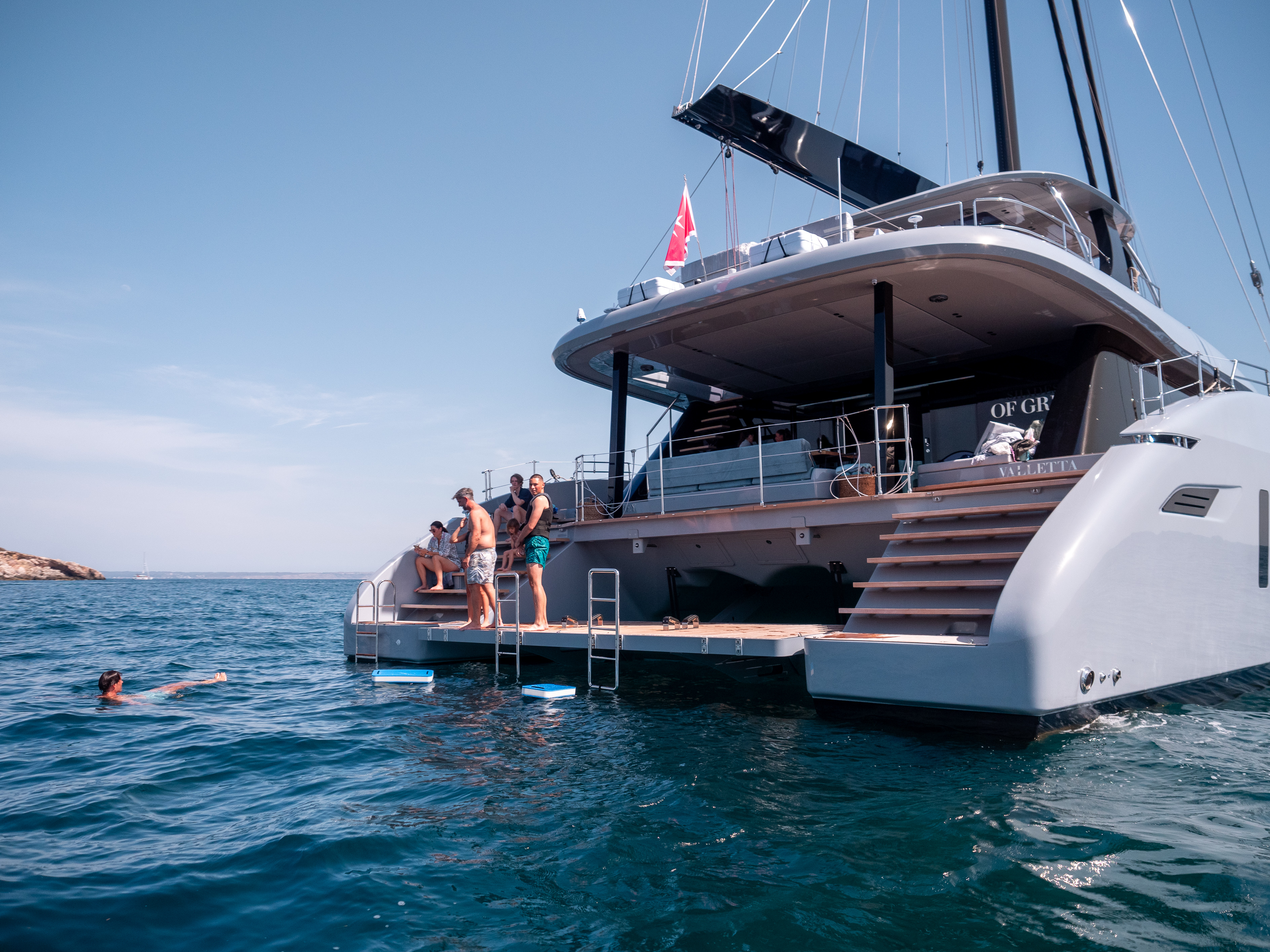 Steps lead down to the swim platform with a hydraulic central section perfect for accessing the water and toys.