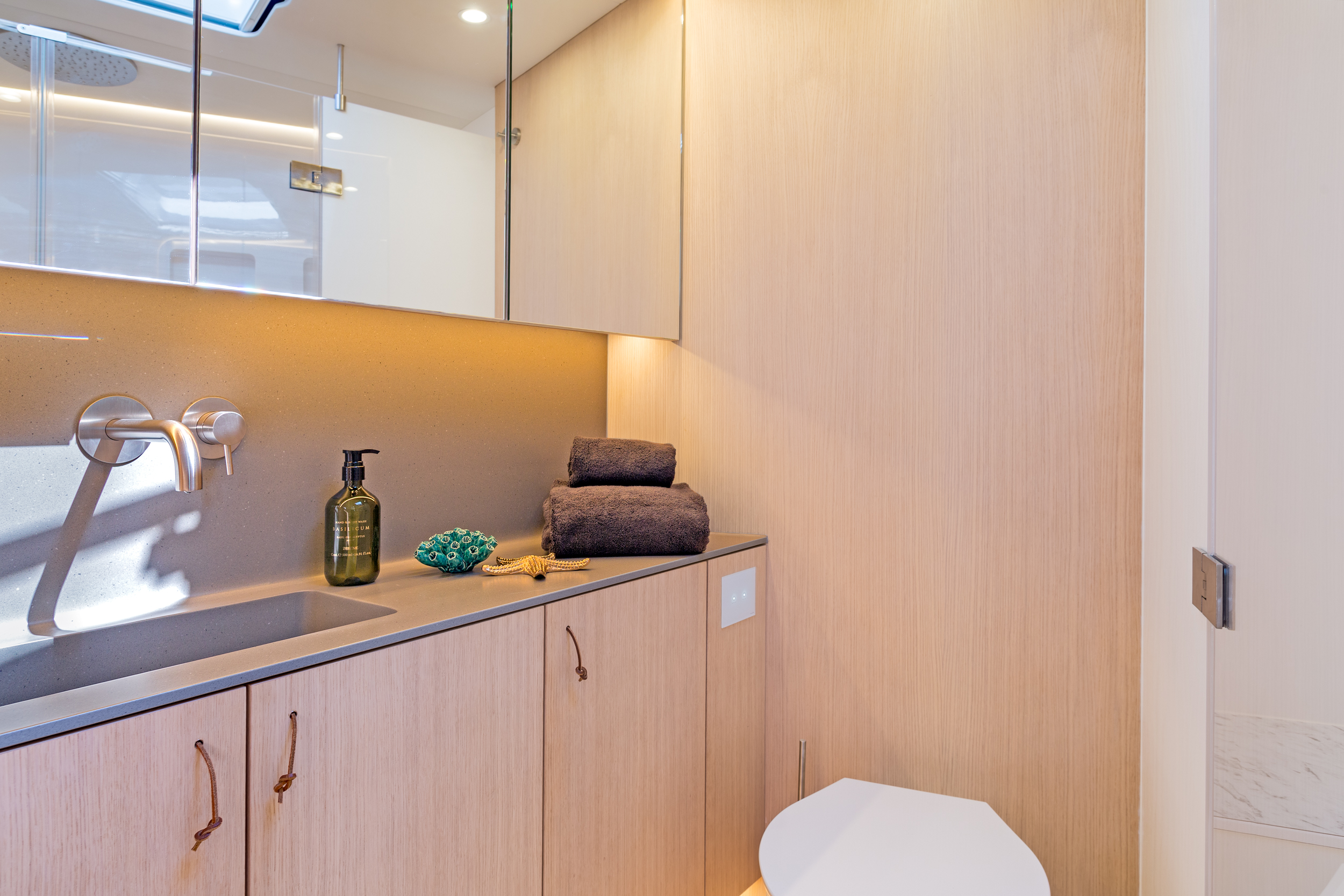 The generous master suite is forward with an ensuite bathroom while the two twin cabins are aft, also with the privacy of their own ensuite bathrooms. Tenders & Toys: