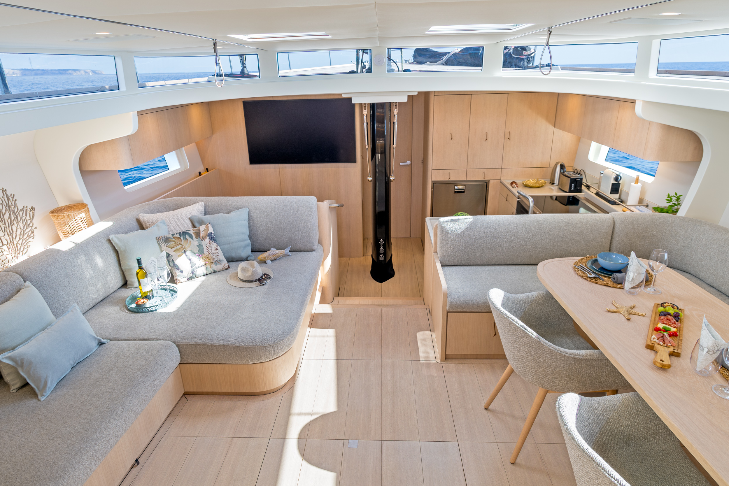 NOTABLE FEATURES OF YUME: ~Flush deck ~Cockpit seating ~Contemporary interior ~Selection of water toys ~Air conditioning ~WiFi