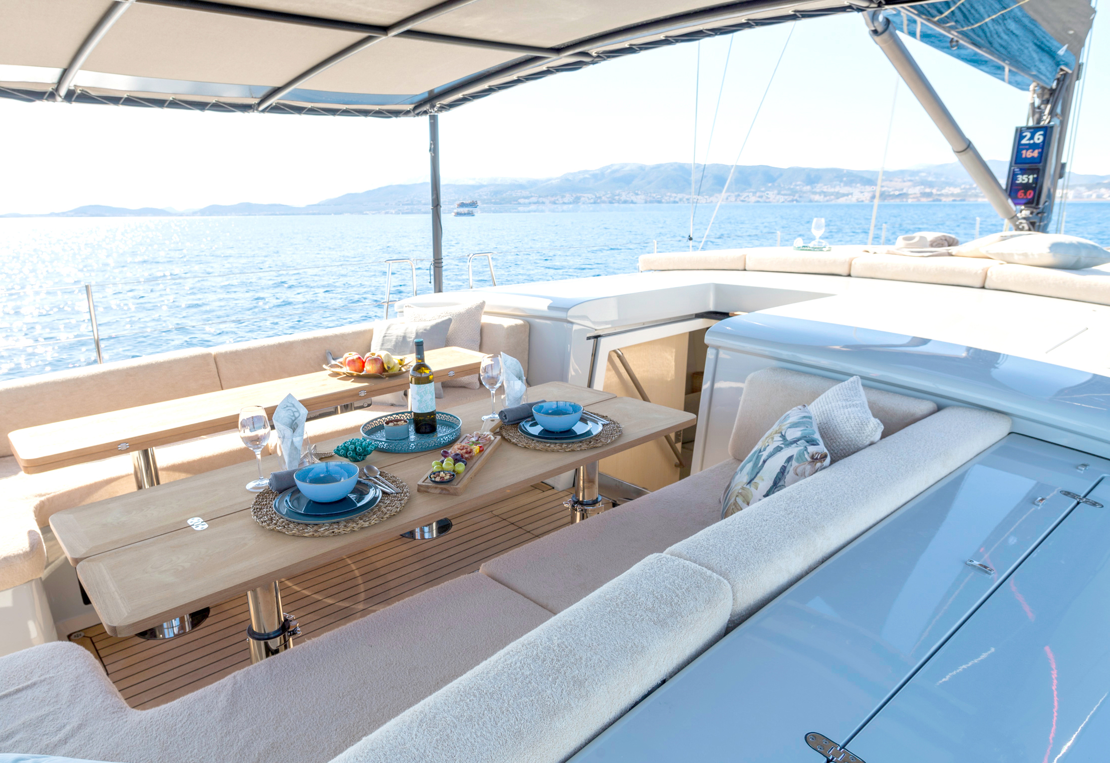 NOTABLE FEATURES OF YUME: ~Flush deck ~Cockpit seating ~Contemporary interior ~Selection of water toys ~Air conditioning ~WiFi