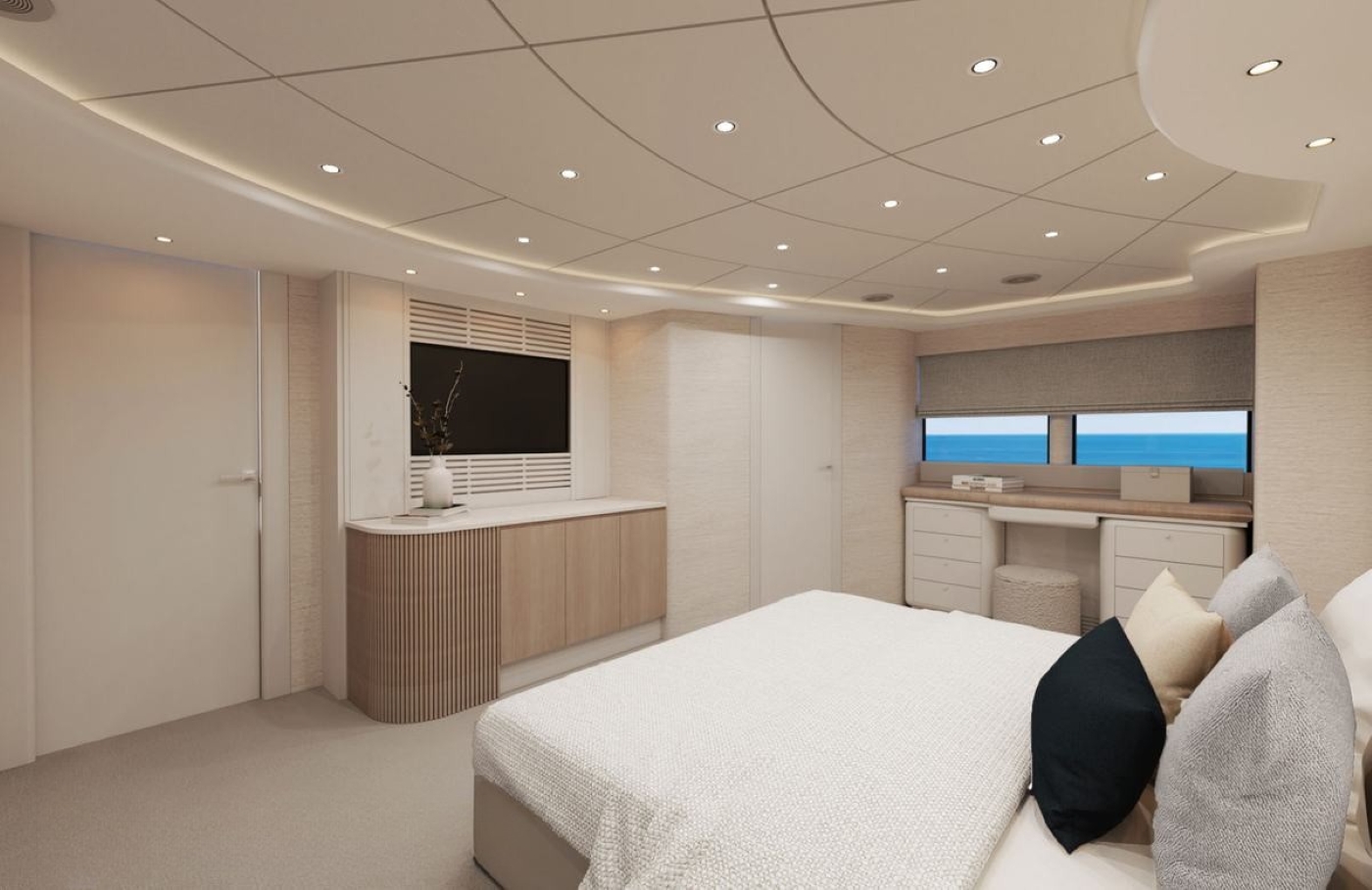 The superior master stateroom is forward on the main deck and features a king-sized bed and stunning his-and-hers ensuite forward. On the lower deck there are two doubles and two twin (with extra pullman bunk) staterooms each with luxury ensuite bathrooms.