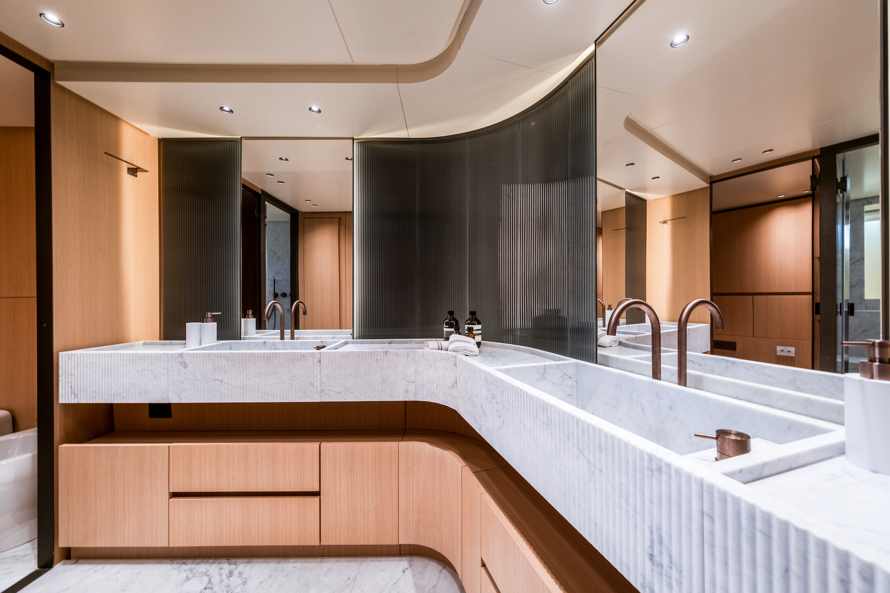 Amidships on the main deck is the well-equipped galley and convenient day head, while forward is the beautiful master suite with luxury ensuite.