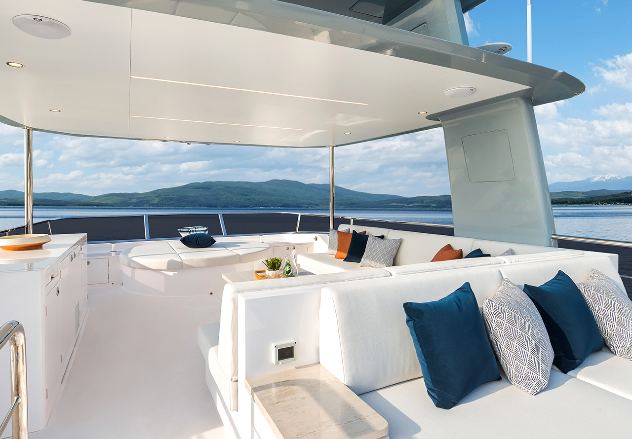 Luxury yacht FREEDOM is a 33m (110’) Horizon FD110 built in 2023 and offering expansive and fully equipped deck spaces and a beautifully crafted interior. She can accommodate up to 10 guests in five suites and is managed by a dedicated crew of six.
