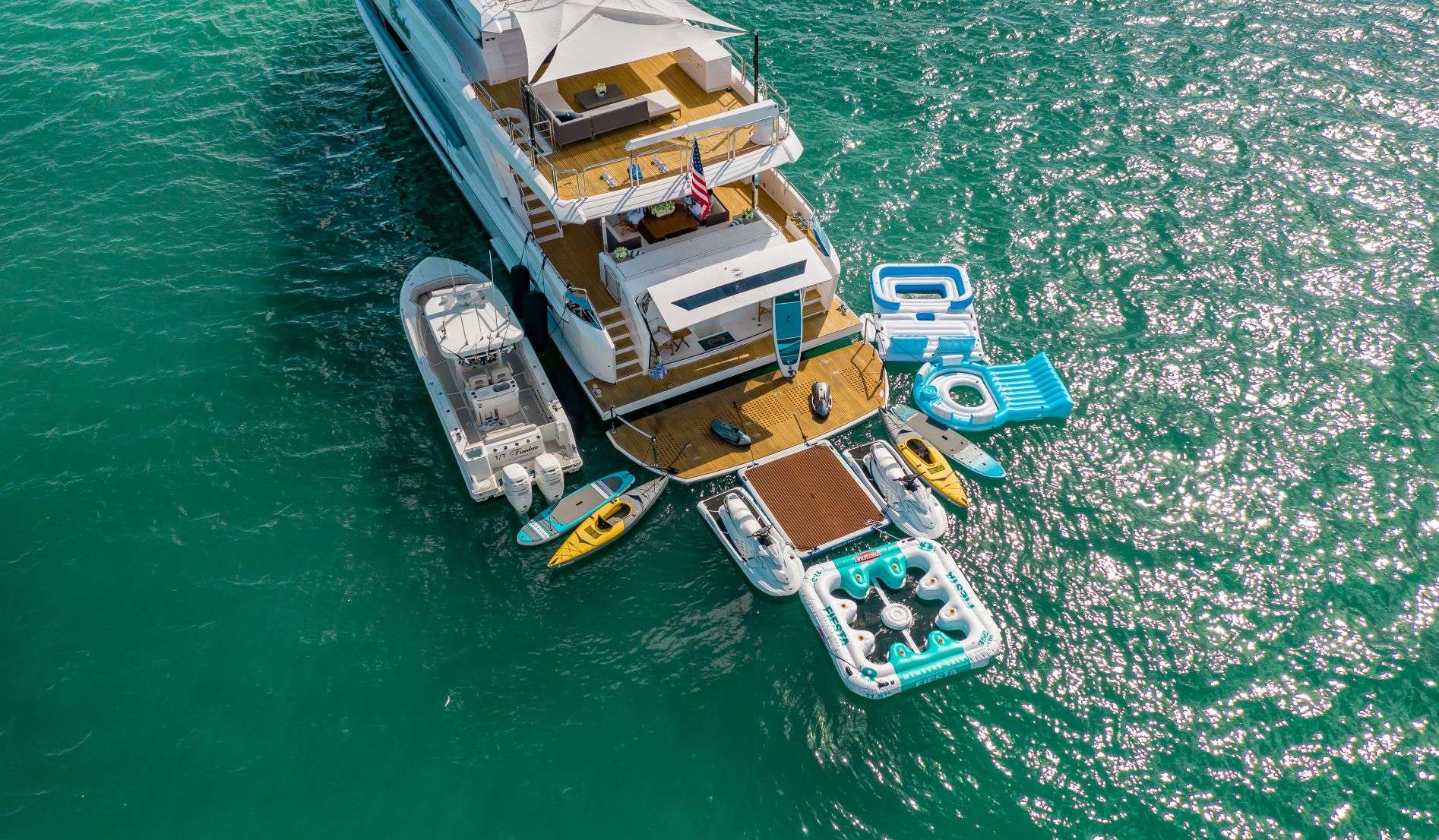 Luxury yacht FREEDOM is a 33m (110’) Horizon FD110 built in 2023 and offering expansive and fully equipped deck spaces and a beautifully crafted interior. She can accommodate up to 10 guests in five suites and is managed by a dedicated crew of six.