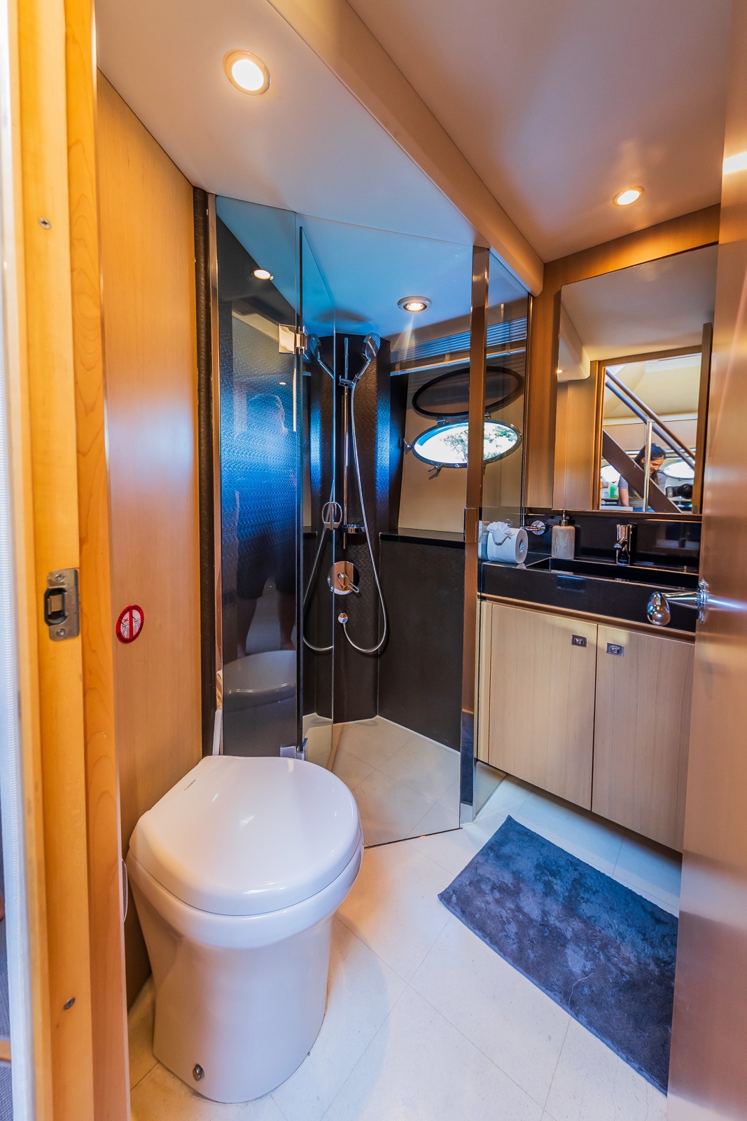 The lower deck guest suites are configured as one full beam master with luxury ensuite and separate walk-in wardrobe, one full beam VIP in the bow and one twin and one bunk cabin, each with the luxury and privacy of ensuite bathroom facilities.