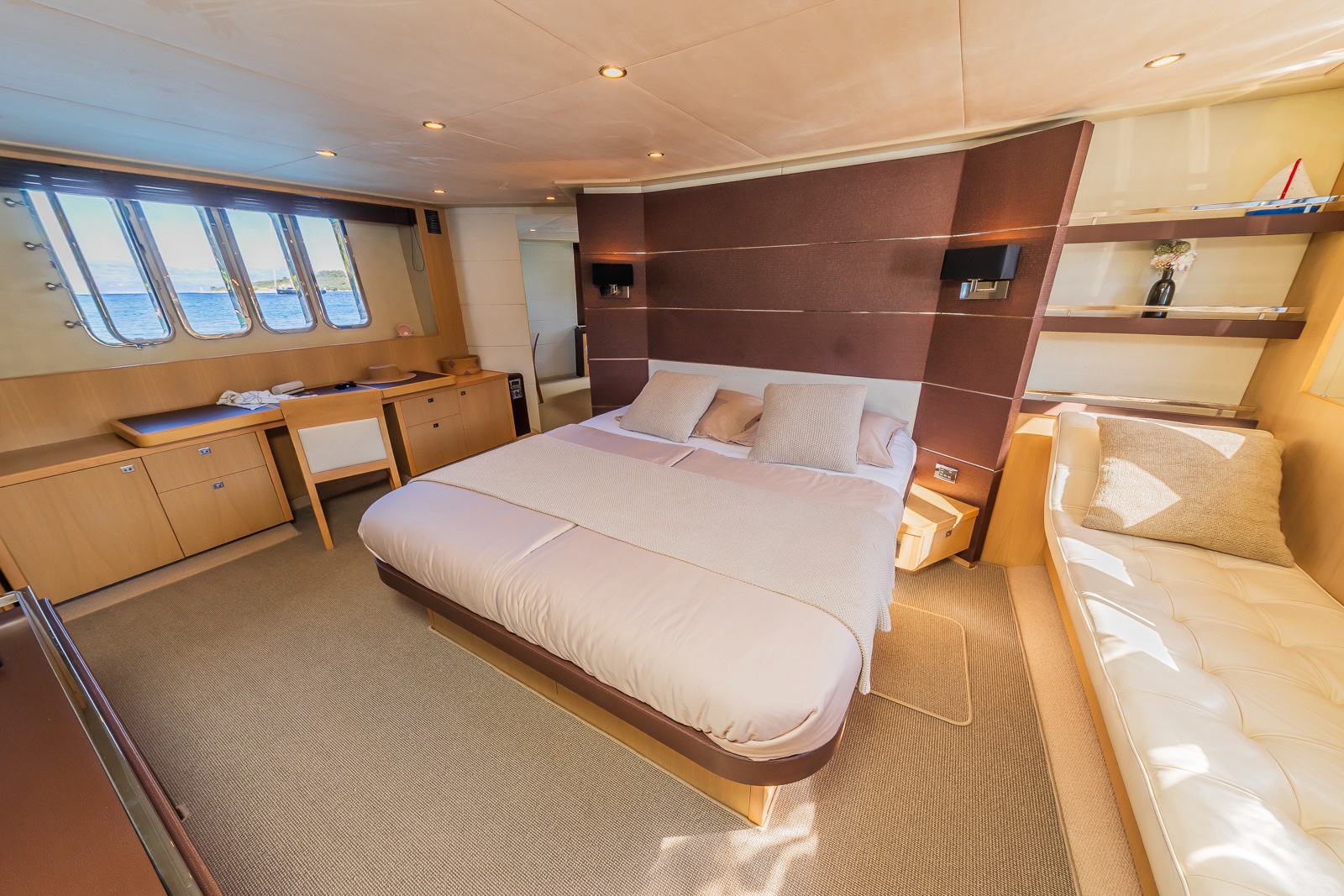 She is a high-performance vessel commanding a top speed of 32 knots and with accommodation for up to eight guests in four suites, she makes the perfect choice for thrill-seeking charterers.