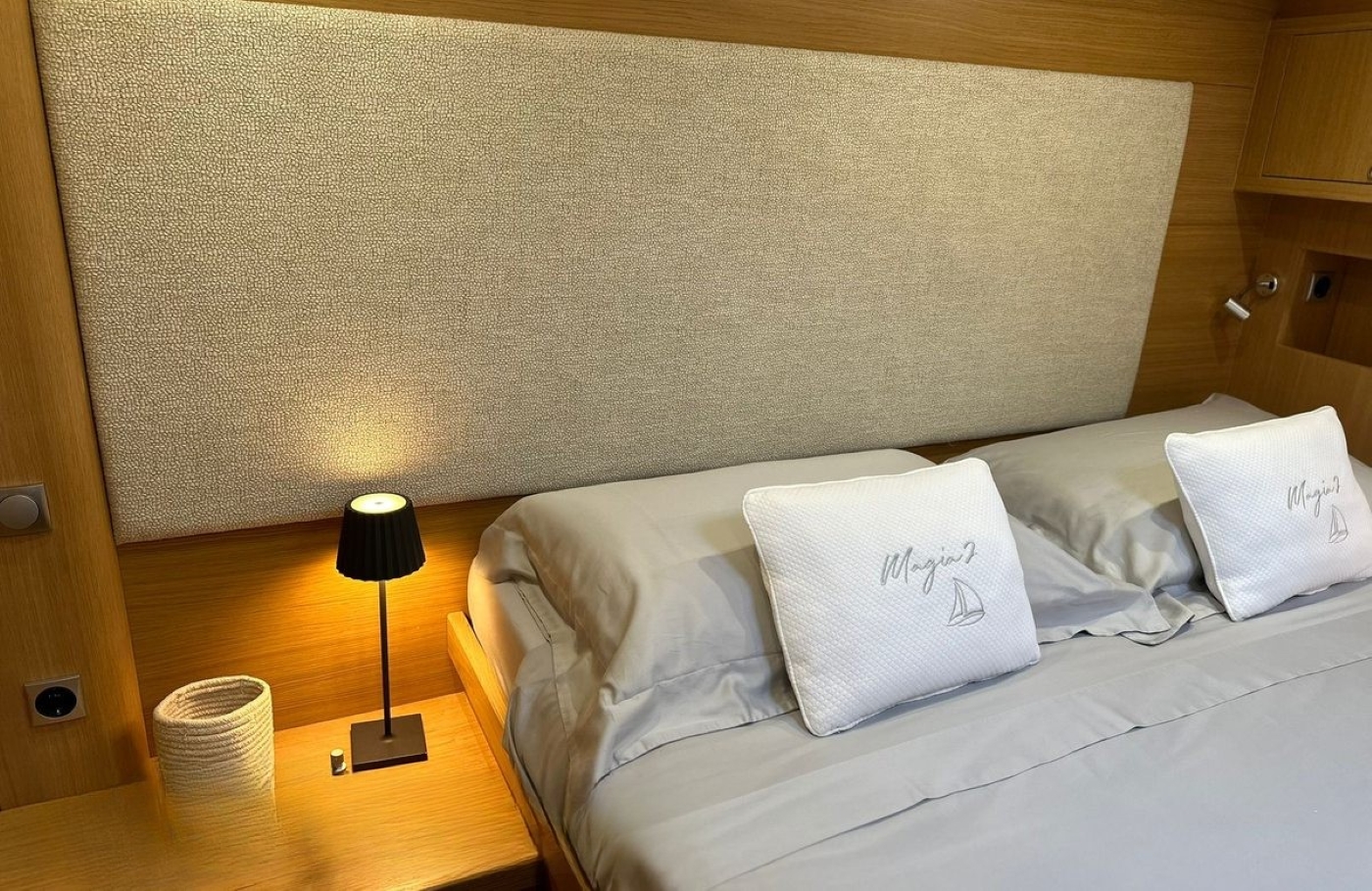 At 21m (68’11”) she is well laid out across the decks and interior and invites you to embark on a journey of elegance and serenity. She can accommodate up to six guests in three suites who will be hosted on board by a two-person crew.