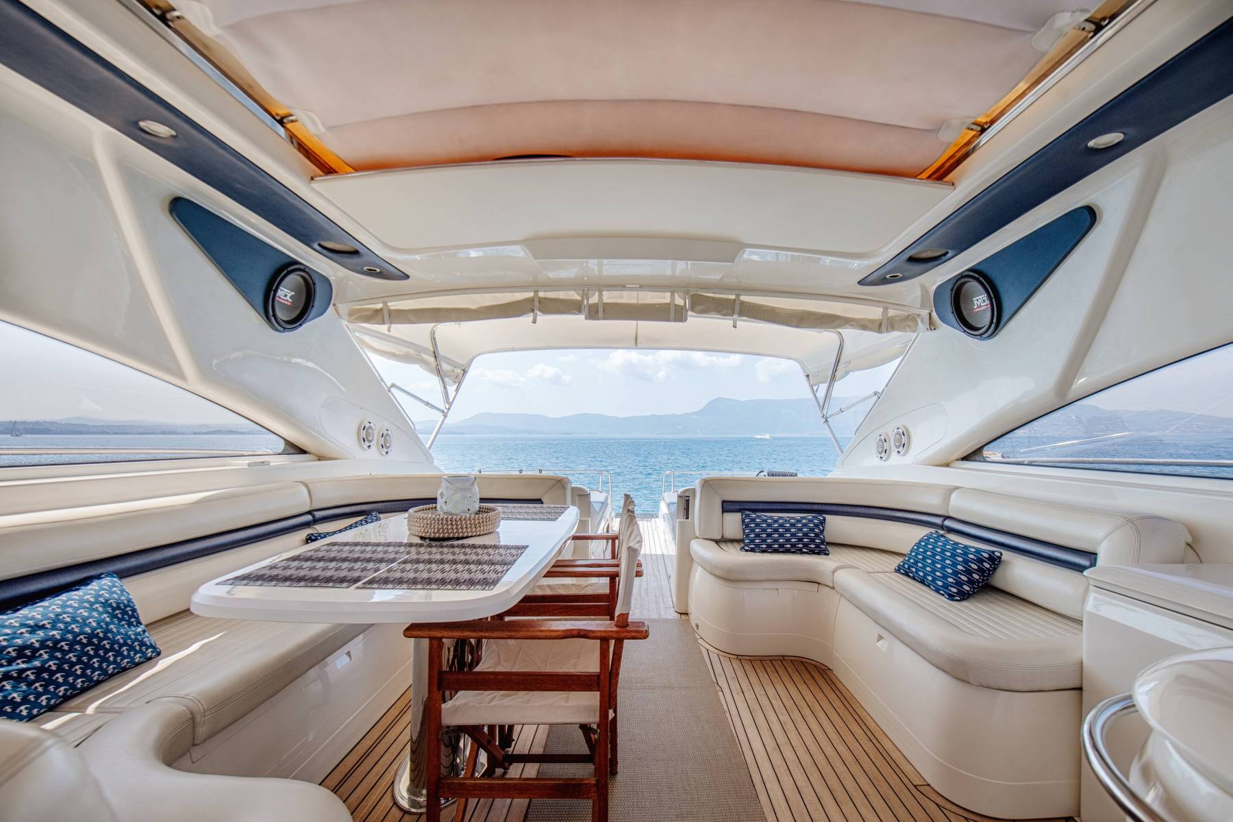 The foredeck offers a double sun pad where guests can lie back and watch the world go by across the bow.