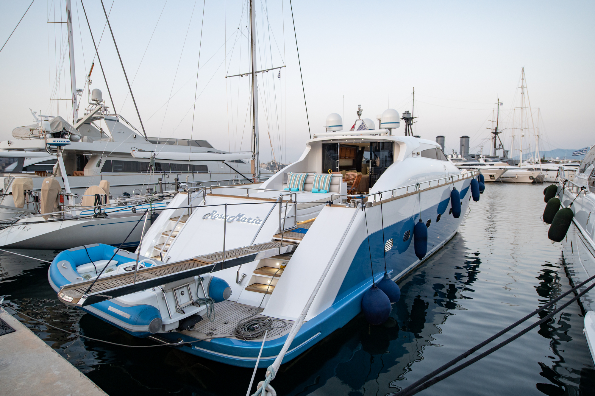 NOTABLE FEATURES OF ROSA MARIA: ~Eye-catching blue hull ~Beautifully maintained ~Top speed of 32 knots ~Water toys including jet ski ~Air conditioning ...