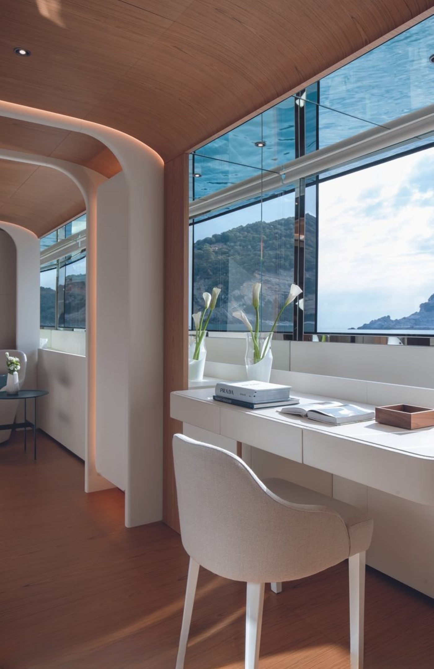 This wonderful yacht offers three main deck levels plus a sky-high observation deck with 360-degree views thanks to the glass balustrade which can be enjoyed from the plush sun pads.