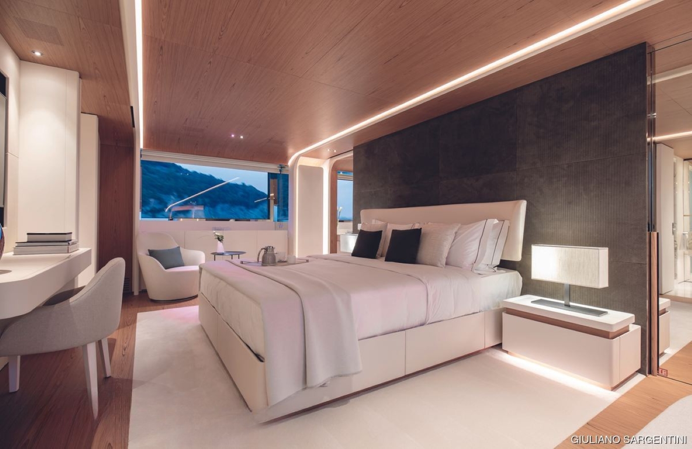 Alternative al fresco dining can be hosted on the upper deck aft with adjacent sofas perfect for pre-dinner drinks. The expansive foredeck on this level is all about the pool which is accompanied by a wide sun pad.