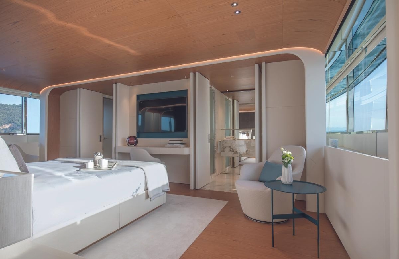 The yacht features 5 lavish cabins, accommodating up to 10 guests in unparalleled comfort.