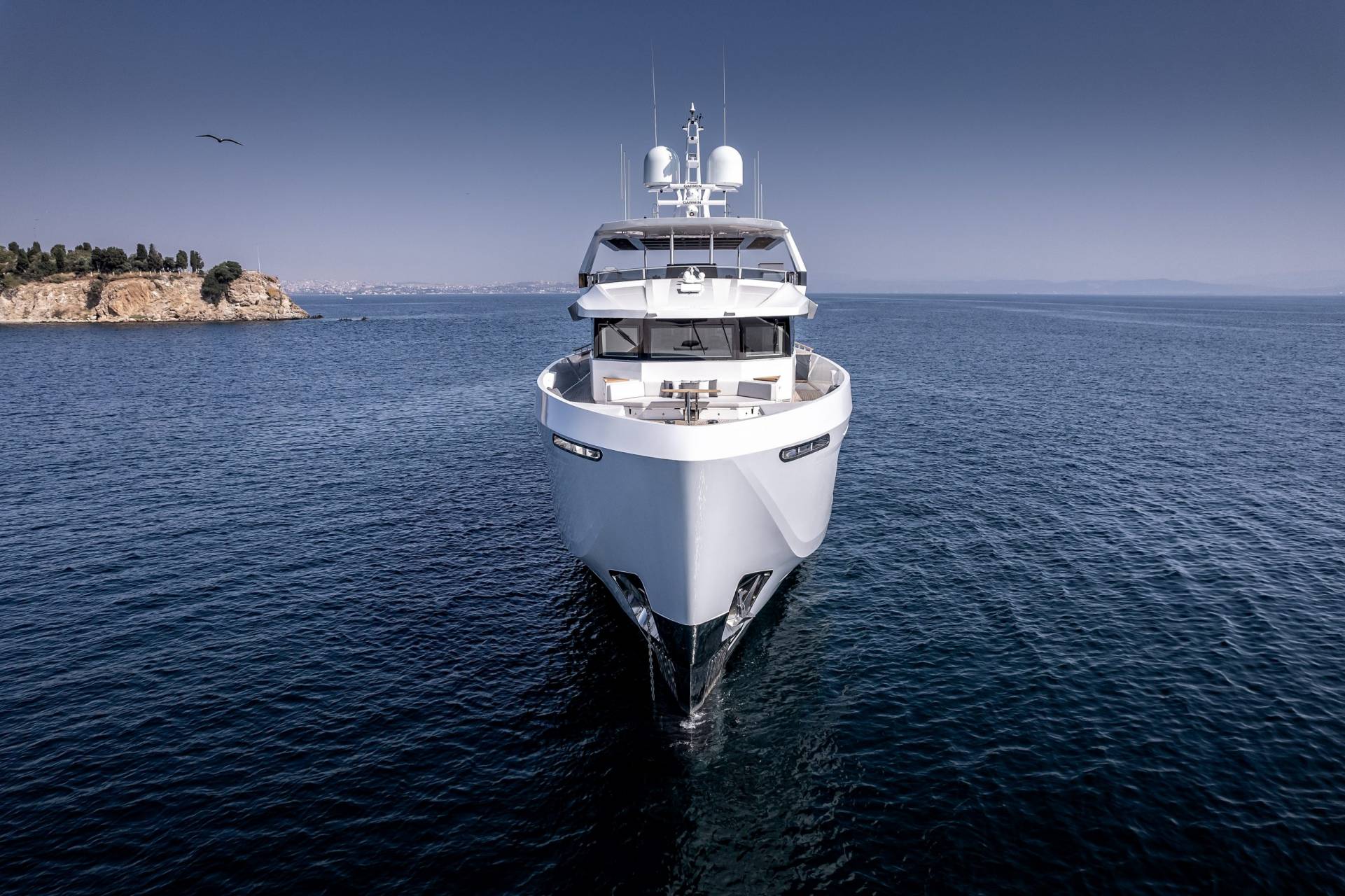 Luxury yacht EAU LA LA is a 37.30 m (122' 5") Numarine explorer-style yacht built in 2023, with a sturdy profile, plumb bow and open upper deck aft. She can accommodate up to ten guests in five suites with an onboard crew of five.