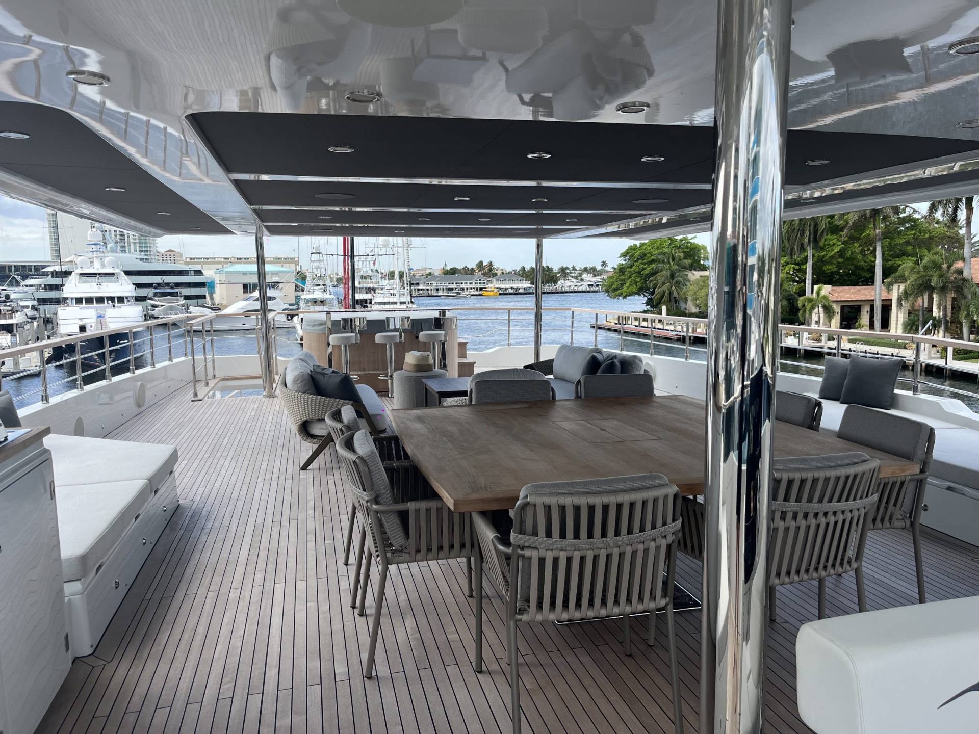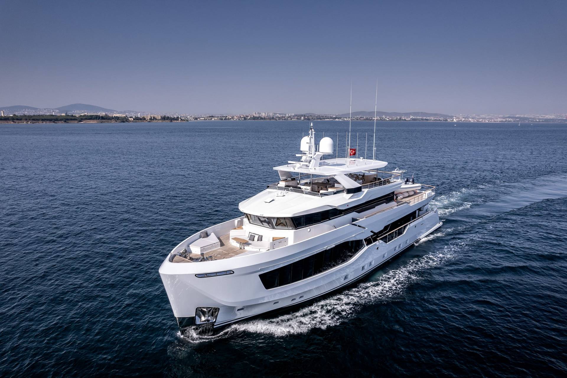 Luxury yacht EAU LA LA is a 37.30 m (122' 5") Numarine explorer-style yacht built in 2023, with a sturdy profile, plumb bow and open upper deck aft. She can accommodate up to ten guests in five suites with an onboard crew of five.