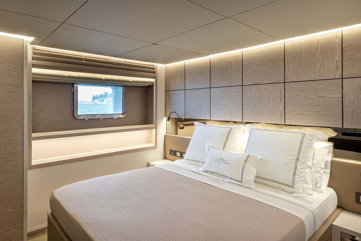She can accommodate up to ten guests in five suites with an onboard crew of five.