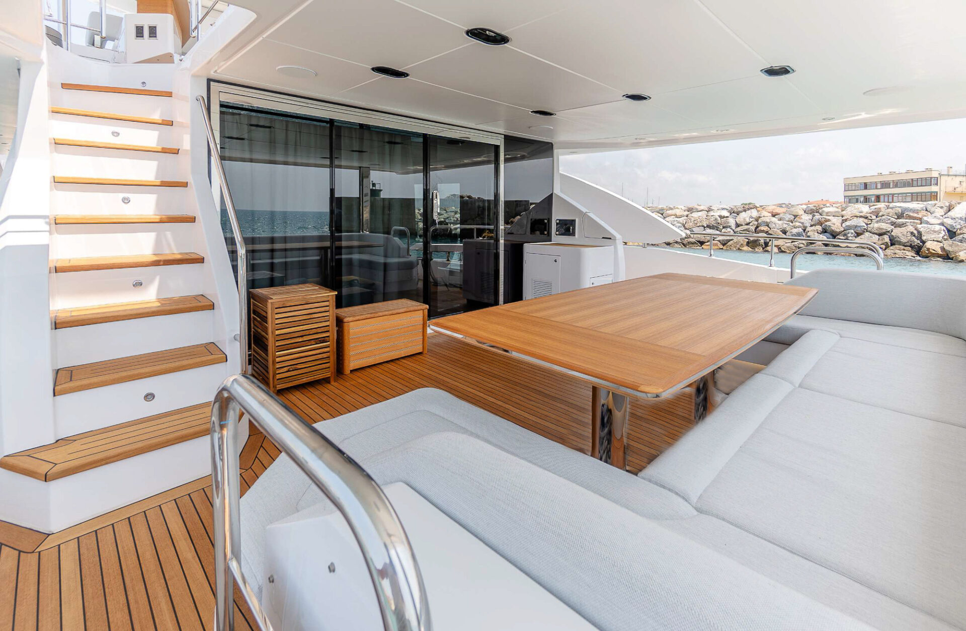D&Y): ~Spacious al fresco entertaining ~Designer interior ~Loads of water toys ~Main deck master suite ~At anchor and underway stabilisers ~Air conditioning ~WiFi