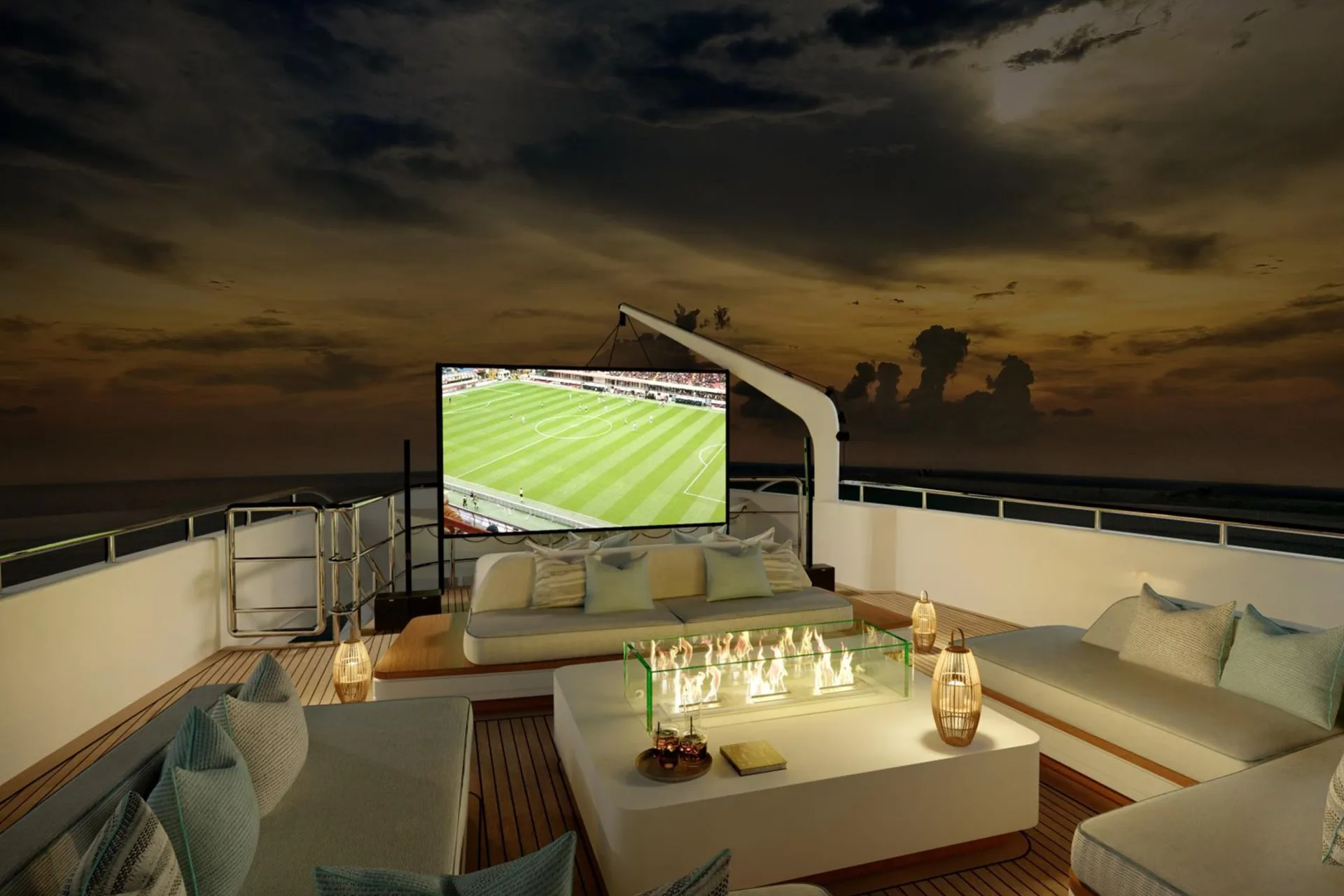 The upper deck and sun deck offer further al fresco entertainment space with deck dining, lounges and sun pads.