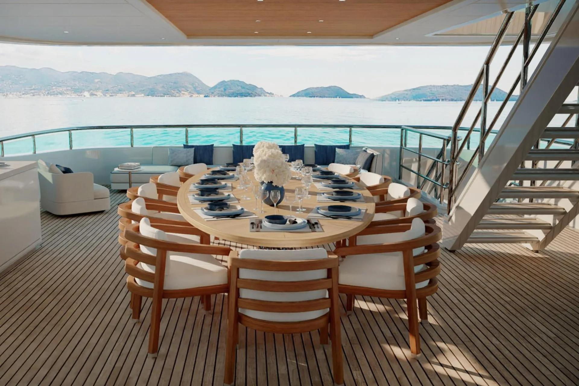 NOTABLE FEATURES OF DYNA: ~50m yacht with Oasis Deck and pool ~Tri-deck design ~Spa and massage room ~Outdoor cinema and firepit ~Air conditioning ~WiFi