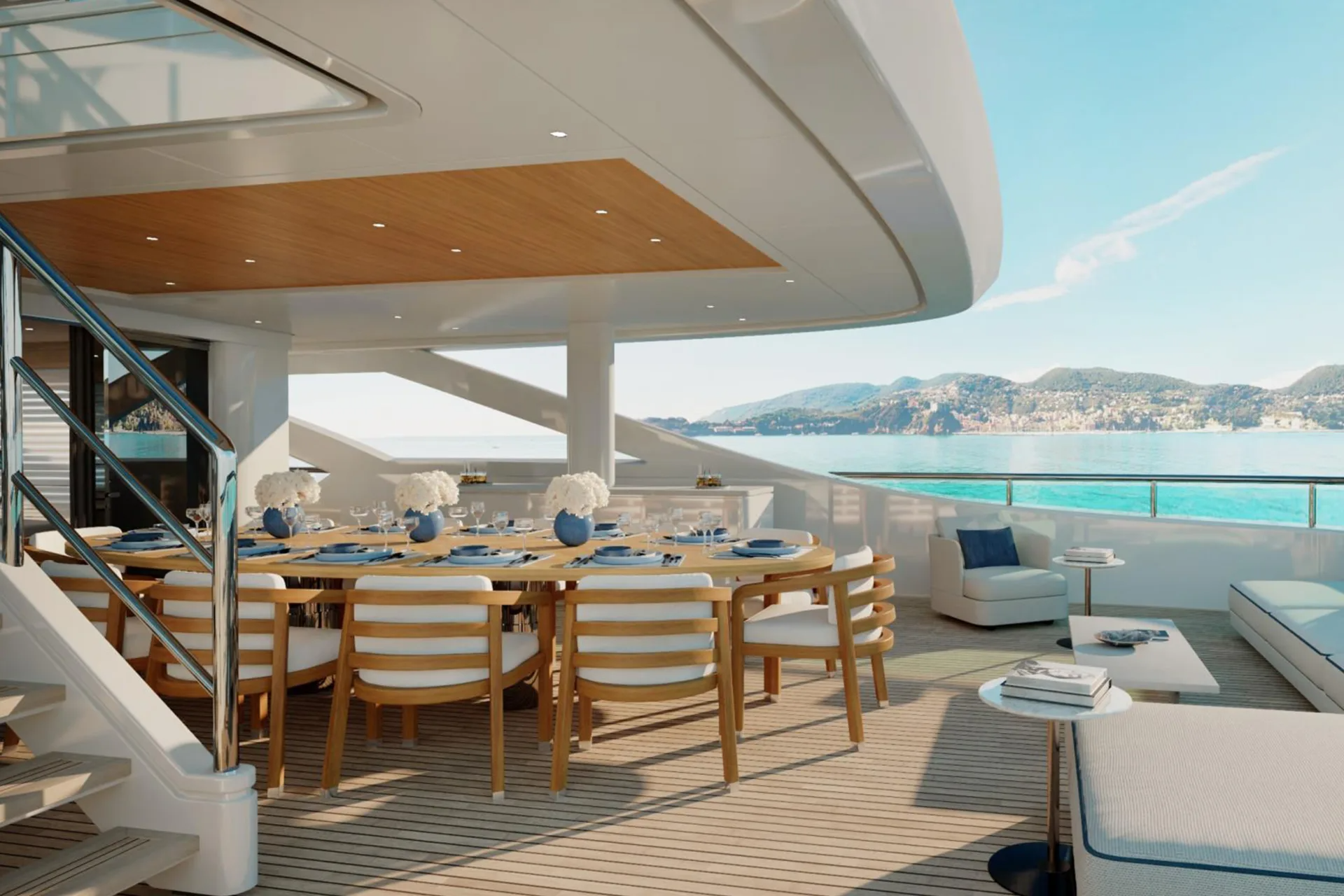 The accommodation is for up to ten guests in five suites including a main deck master and four equal sized lower deck staterooms. Tenders and Toys