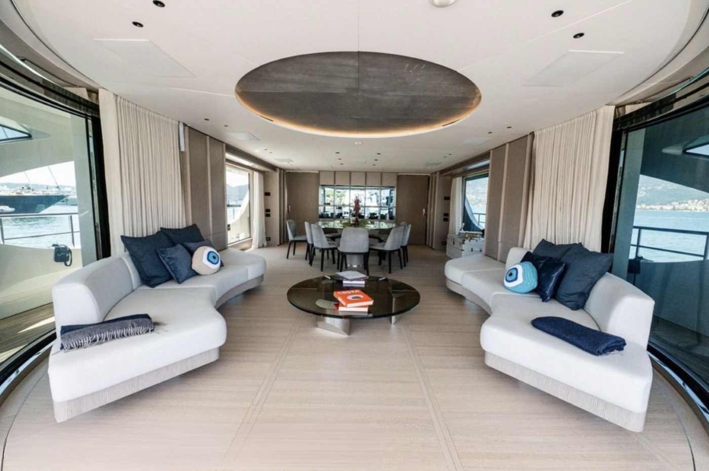 The interior of the yacht was designed by Bonetti / Kozerski architecture and features light wood finishes with neutral soft furnishings across a sky lounge and main salon with both lounge and dining room.