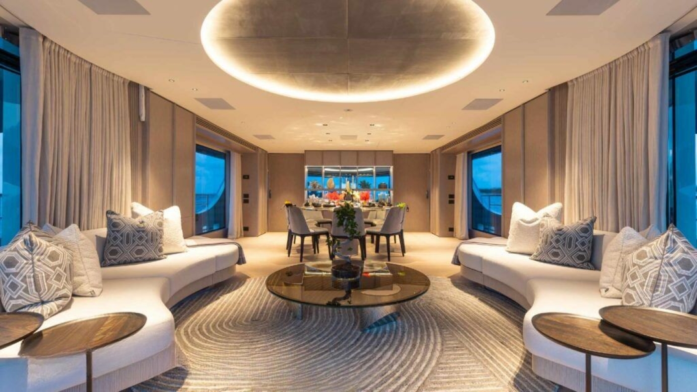 The interior of the yacht was designed by Bonetti / Kozerski architecture and features light wood finishes with neutral soft furnishings across a sky lounge and main salon with both lounge and dining room.