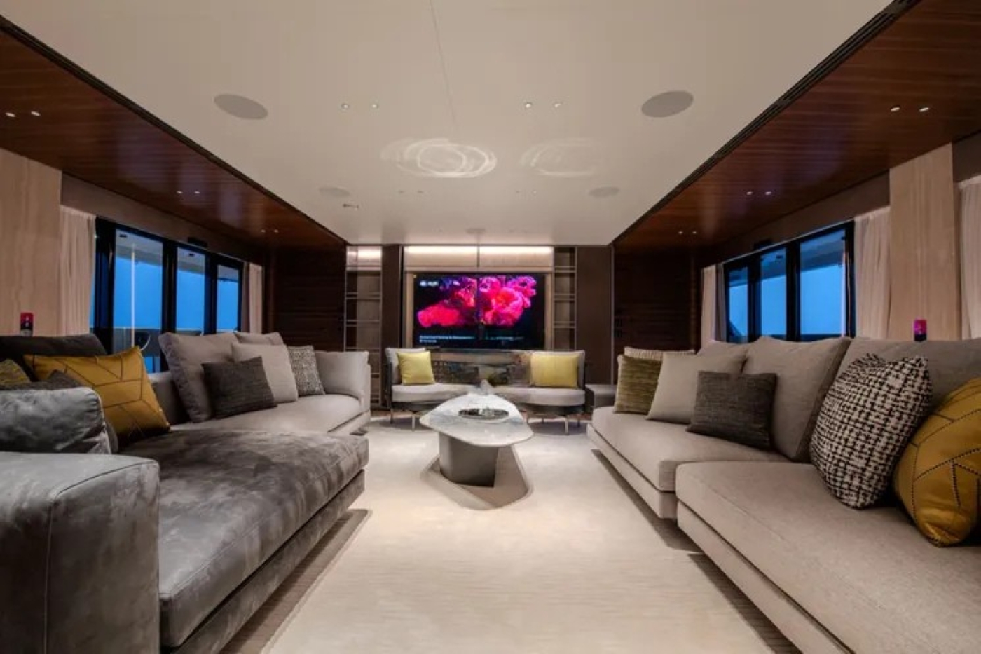 The interior flows seamlessly into the exterior spaces with the main and upper deck offering wonderful salons designed to the owner’s specifications by Hot Lab.