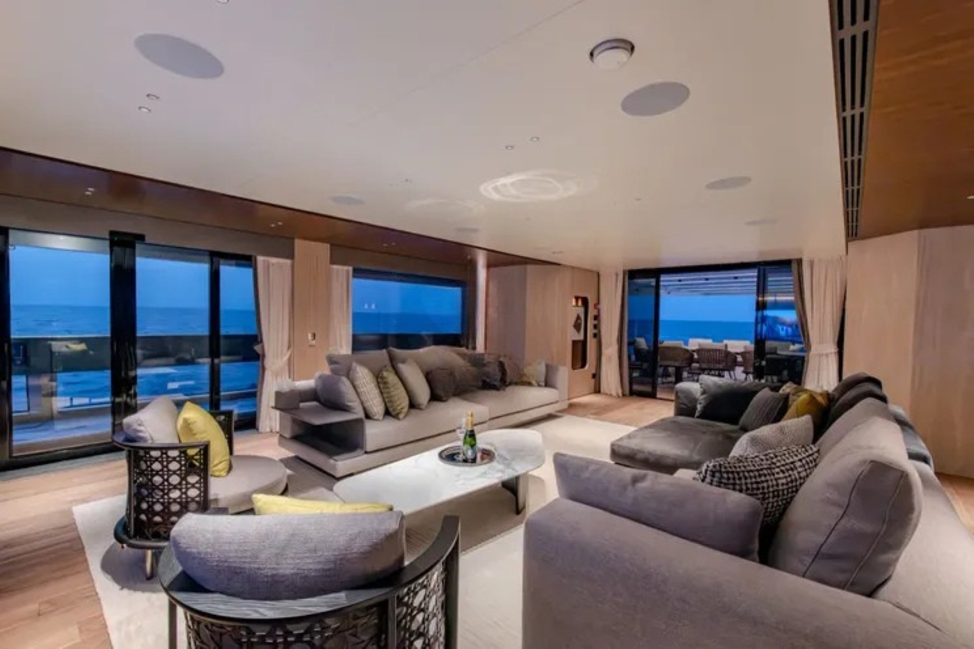 The stern area is just 50cm above the sea level and offers two fold-out wings to create additional space. The upper foredeck offers an additional pool with plush seating while the upper deck aft is dedicated to al fresco entertaining.