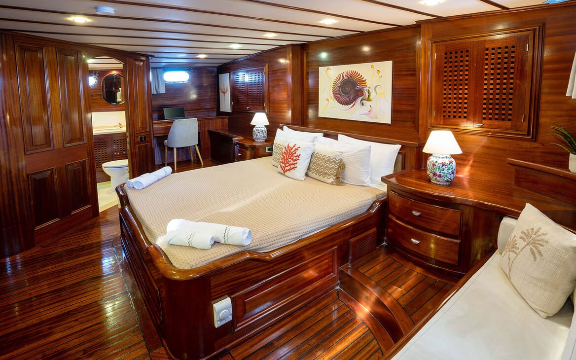 She can accommodate up to twelve guests in six suites who will be looked after by five crew members.