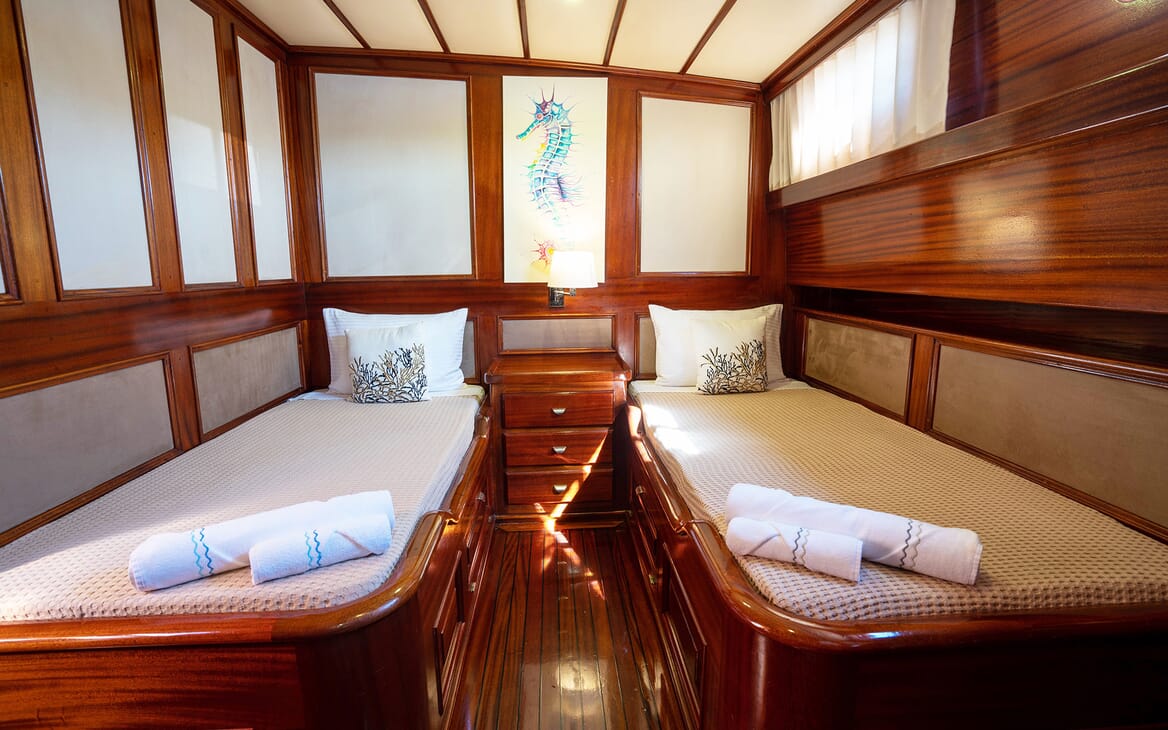 She can accommodate up to twelve guests in six suites who will be looked after by five crew members.