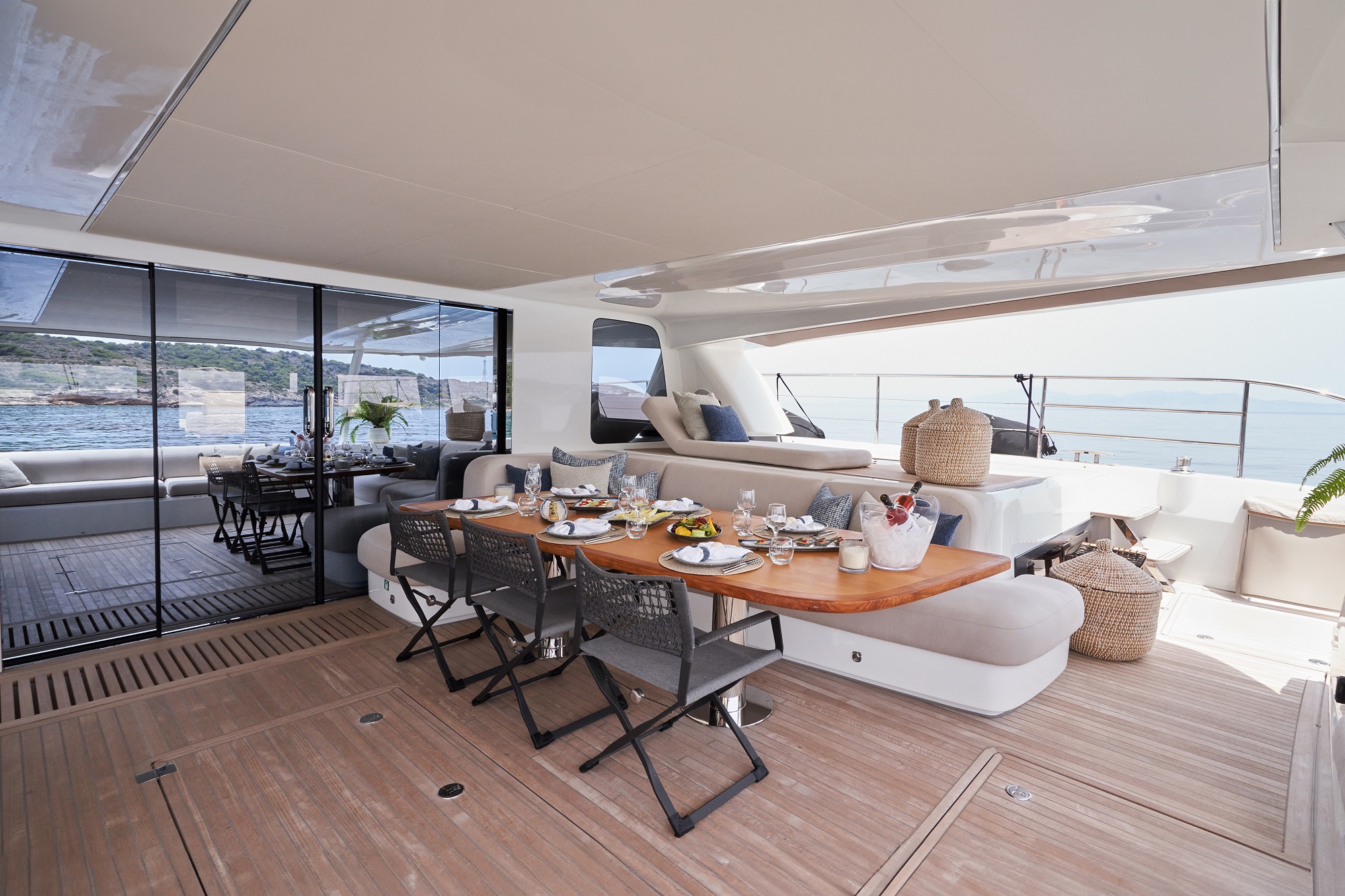 Motor yacht VALIUM 67 is a 20.15 m (66' 1") Lagoon motor catamaran built in 2023 with sociable flybridge and cockpit deck arrangements. She can accommodate up to ten guests in six suites with an on-board crew of four.