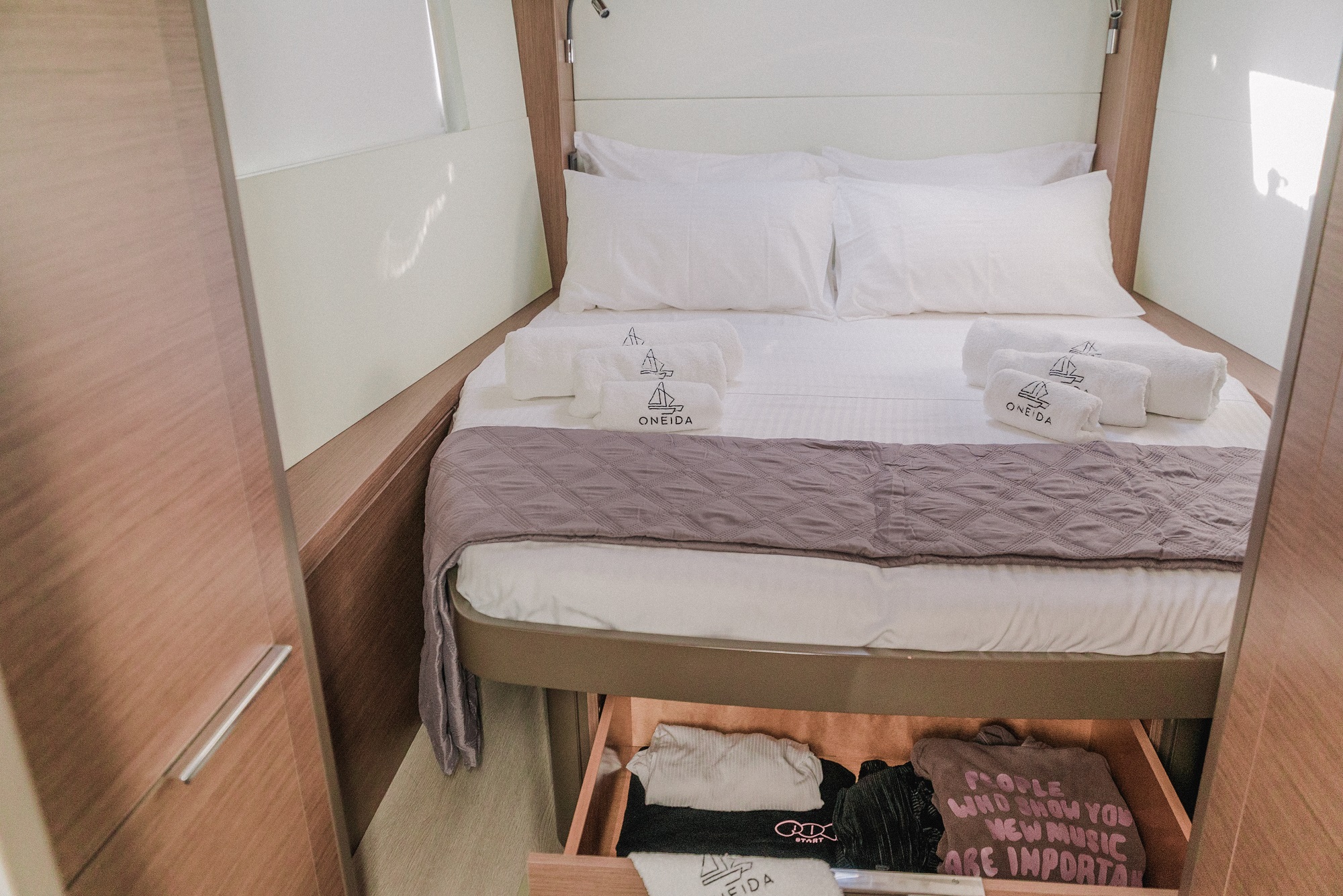 Sailing yacht ONEIDA is a 15.85 m (52') Lagoon sailing catamaran built in 2020 with accommodation for up to ten charter guests in five suites. Elegantly presented with spacious indoor and outdoor entertainment space, she is perfect for guests looking for a relaxed sailing charter.