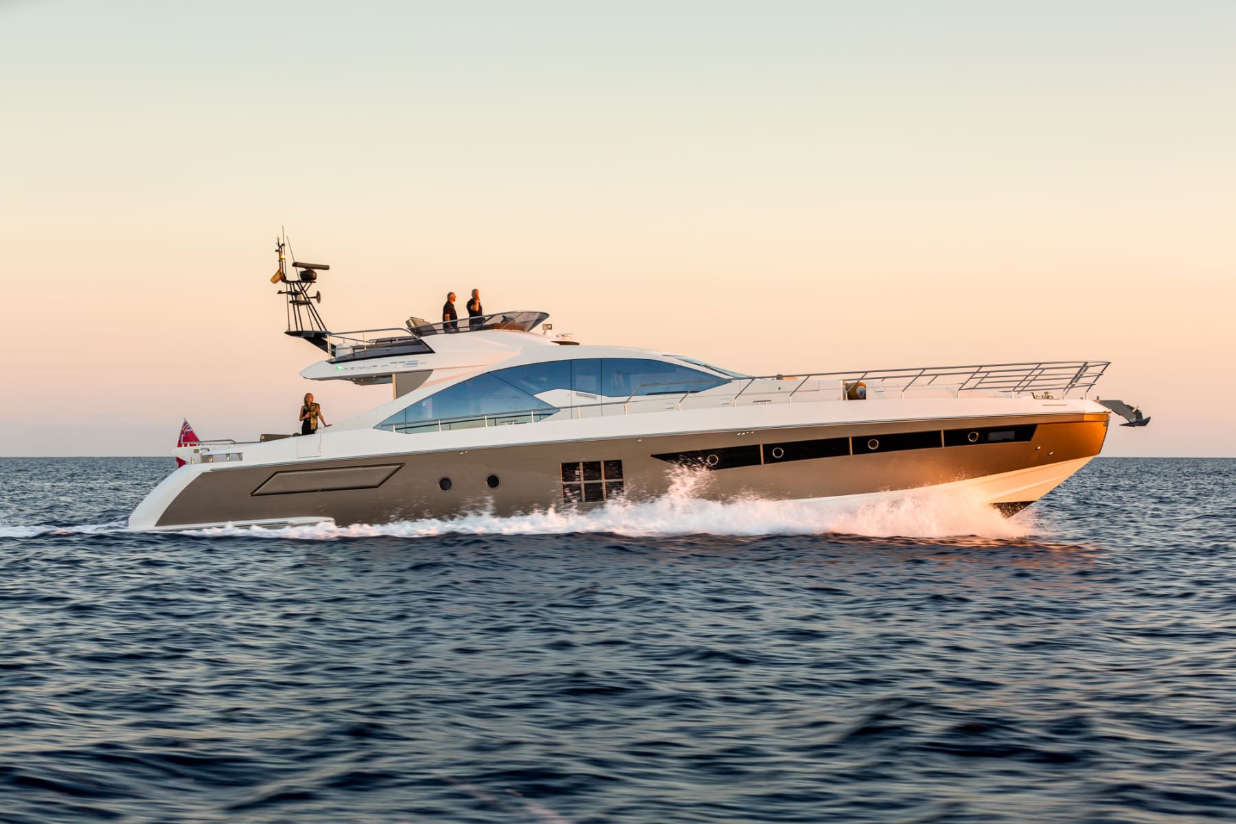Motor yacht KOMODO is a 23.60 m (77' 5") Azimut yacht with an open flybridge, sporty lines and chic interior. Her eye-catching paintwork really stands out, as does her 36-knot top speed. She can accommodate up to eight guests in a three-cabin layout – including two pullman bunks.