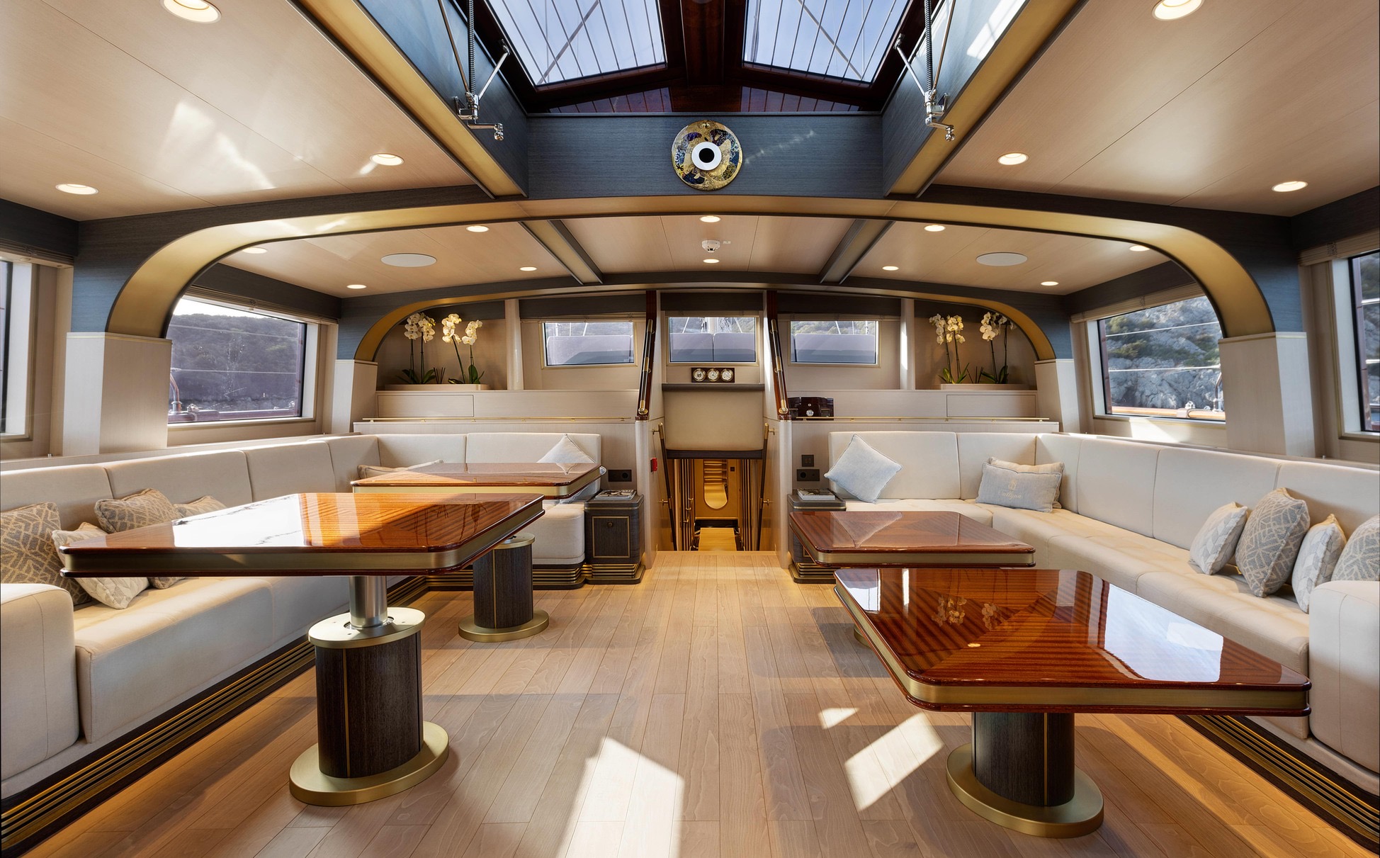 At 47.5m (115’10”) she offers ample deck space and a refined interior to provide smooth sailing charters for up to 12 guests in five suites. There is also a crew of eight on board to ensure guests are looked after throughout the charter.