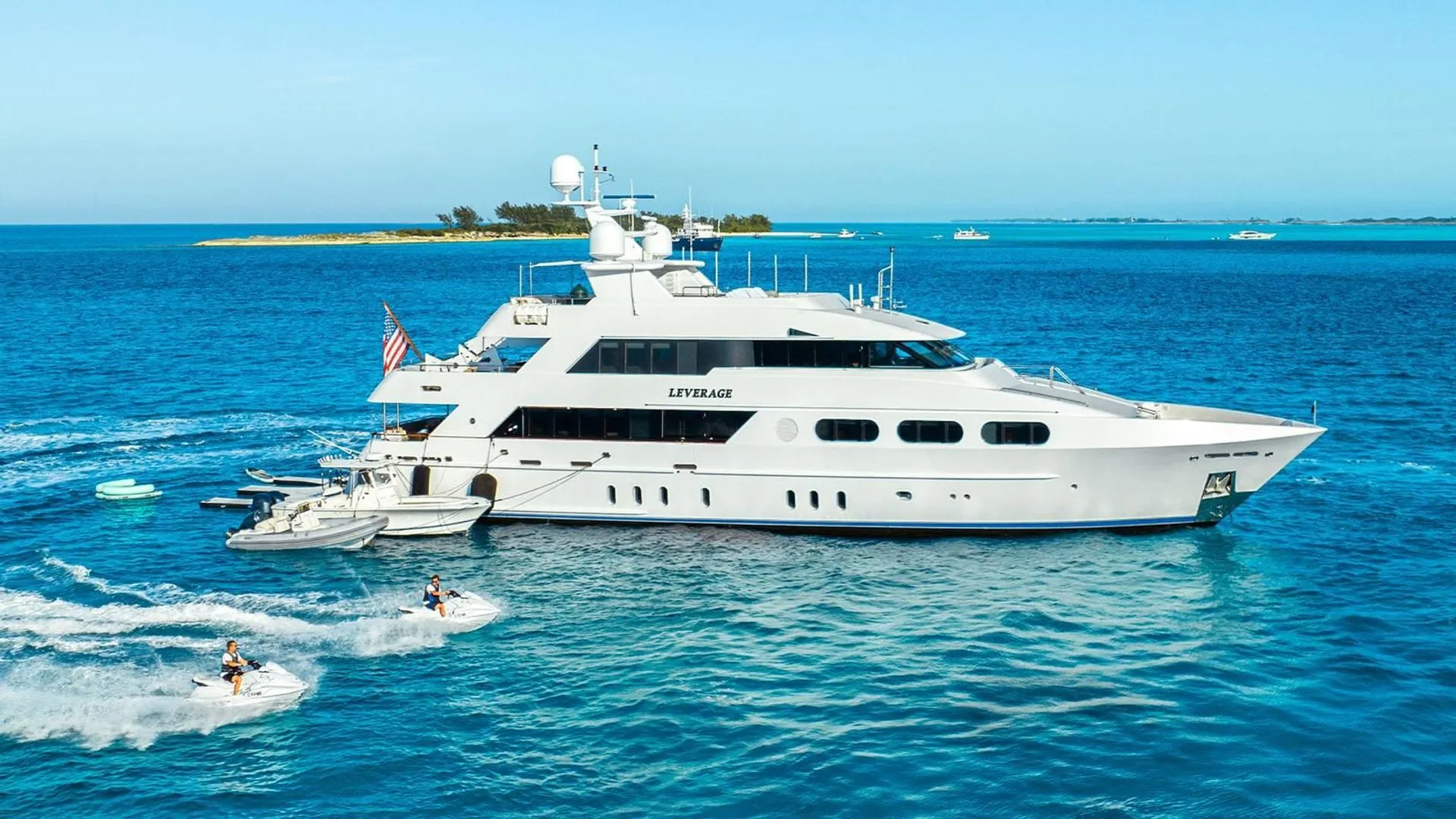 Luxury motor yacht LEVERAGE (ex MILK AND HONEY) is a 38.10 m (125') Palmer Johnson yacht built in 2003 and last refitted in 2023, which included a major overhaul of generators, engines and more. She has a semi-displacement Aluminium hull and comfort features including zero-speed stabilisers and full air-conditioning.