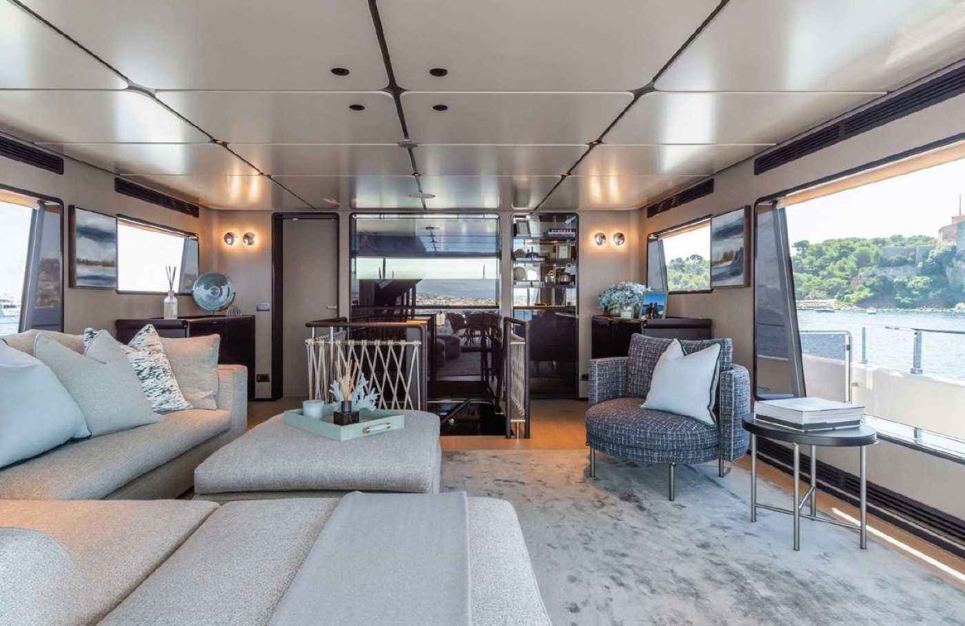 NOTABLE FEATURES OF MRS L: ~Tri-deck design ~Stylish deck furnishings ~Elegant interior ~Loads of water toys ~At anchor and underway stabilisers ~Air conditioning ~WiFi