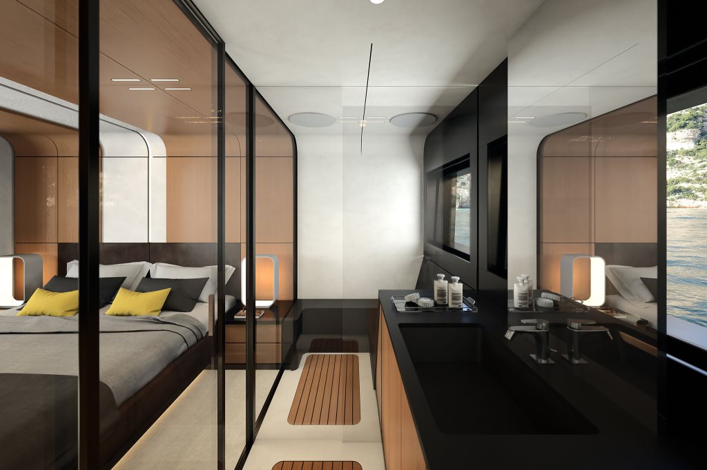 The guest accommodation is on the lower deck and configured as one full beam master, one VIP and one twin, all with the luxury and privacy of ensuite bathroom facilities. The crew accommodation and galley are forward on the lower deck.