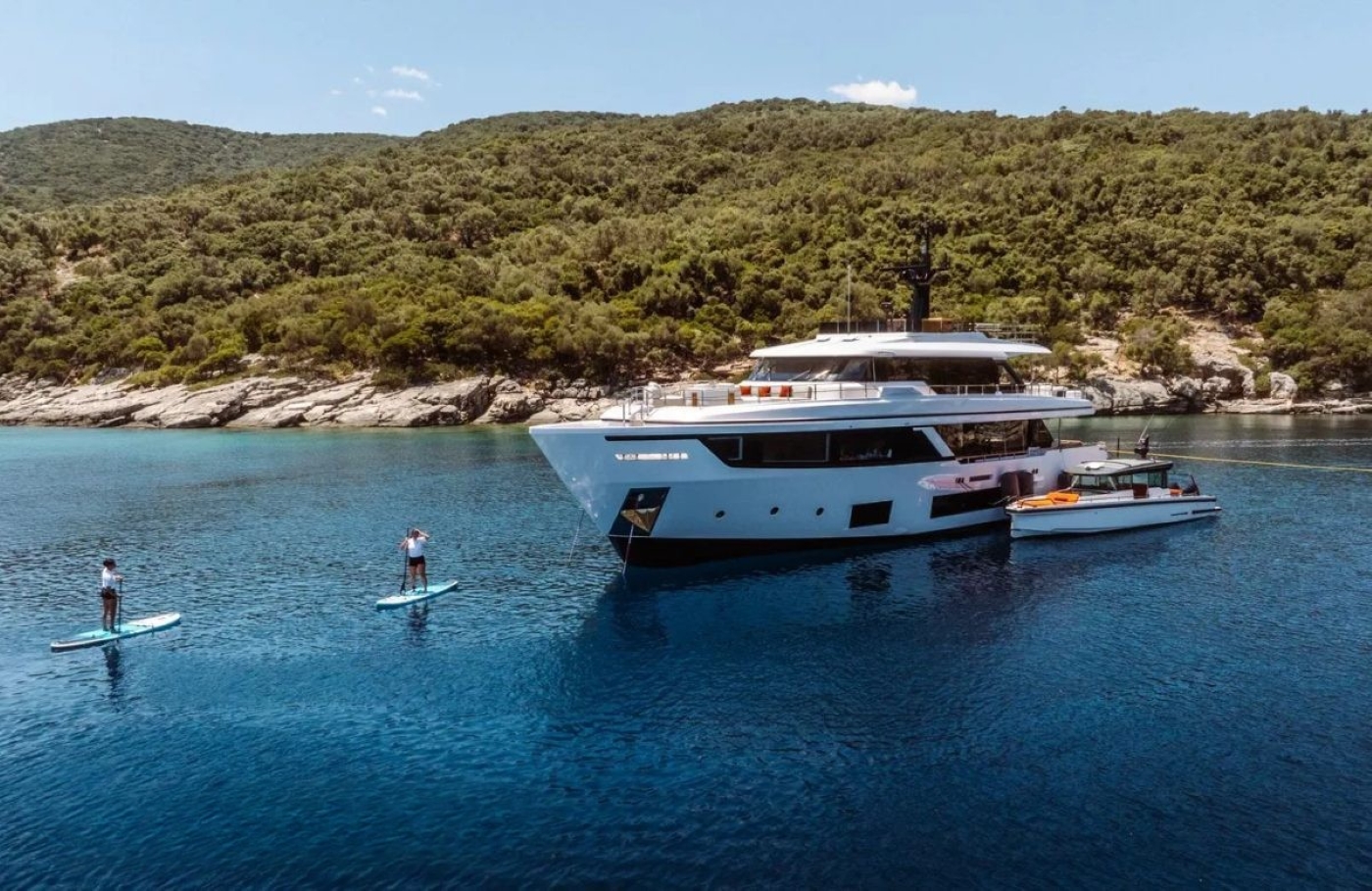 She features an ambitious volume with a timeless aesthetic and forward-thinking styling across her ambitious volume. She can accommodate up to 10 guests in five suites with three additional crew cabins for a crew of 6.