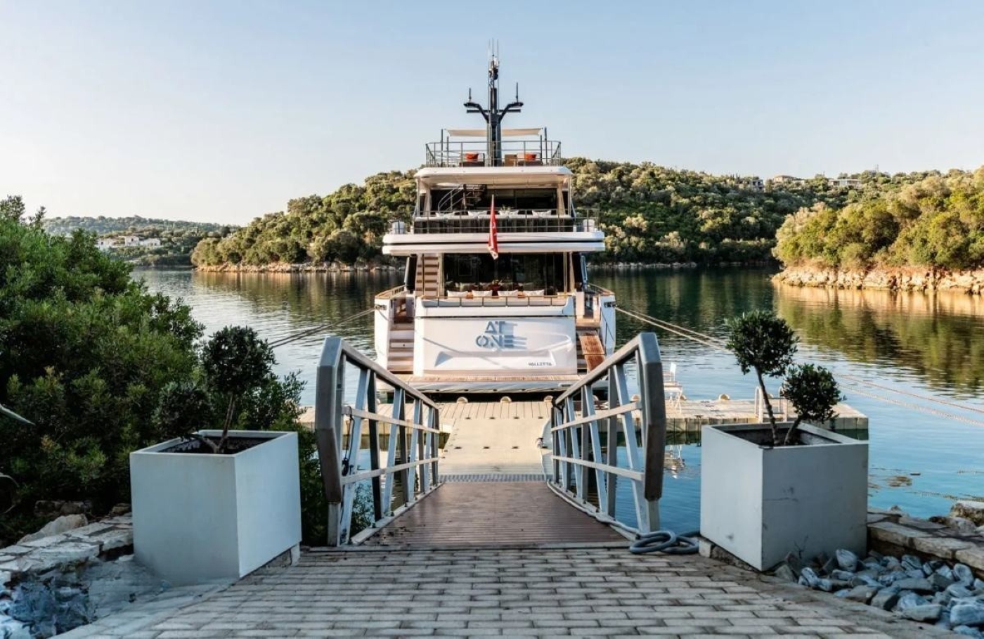 M/Y AT ONE provides yacht charters in The Mediterranean, Directory, Ionian Islands, Greece, East Med, Dodecanese, and Athens.