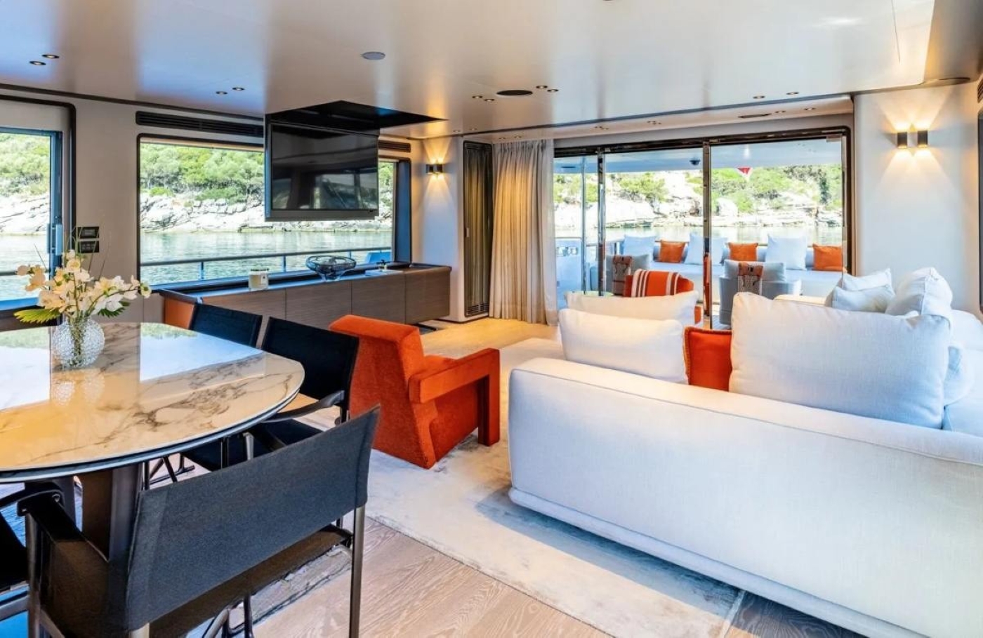 Motor yacht AT ONE is a 28.43m (93'2") Custom Line Navetta 30 from Ferretti Group Engineering, ACPV Architects and Custom Line Atelier launched in 2024. She features an ambitious volume with a timeless aesthetic and forward-thinking styling across her ambitious volume.