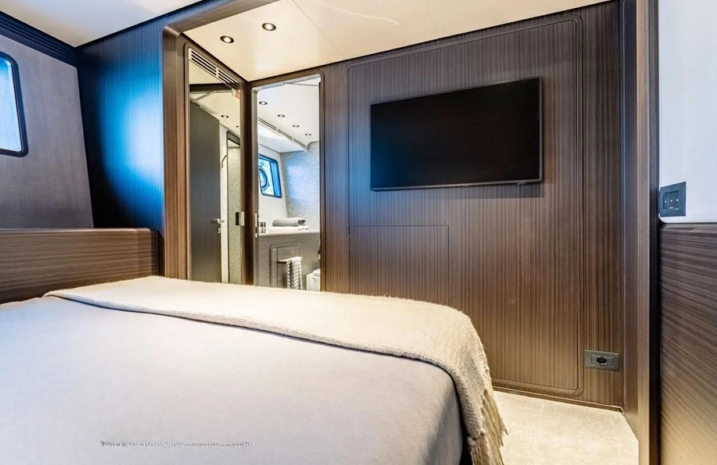 Motor yacht AT ONE is a 28.43m (93'2") Custom Line Navetta 30 from Ferretti Group Engineering, ACPV Architects and Custom Line Atelier launched in 2024. She features an ambitious volume with a timeless aesthetic and forward-thinking styling across her ambitious volume.