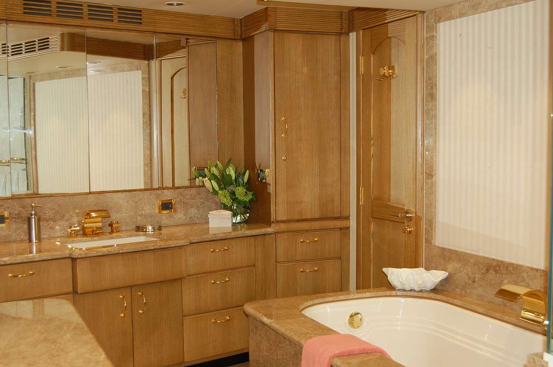 Forward & down is a VIP suite with ensuite bath. The lower deck accessed through the staircase just aft of the galley, offers two guest suites aft and the master forward, all with ensuite baths. The crew is below and aft for ...
